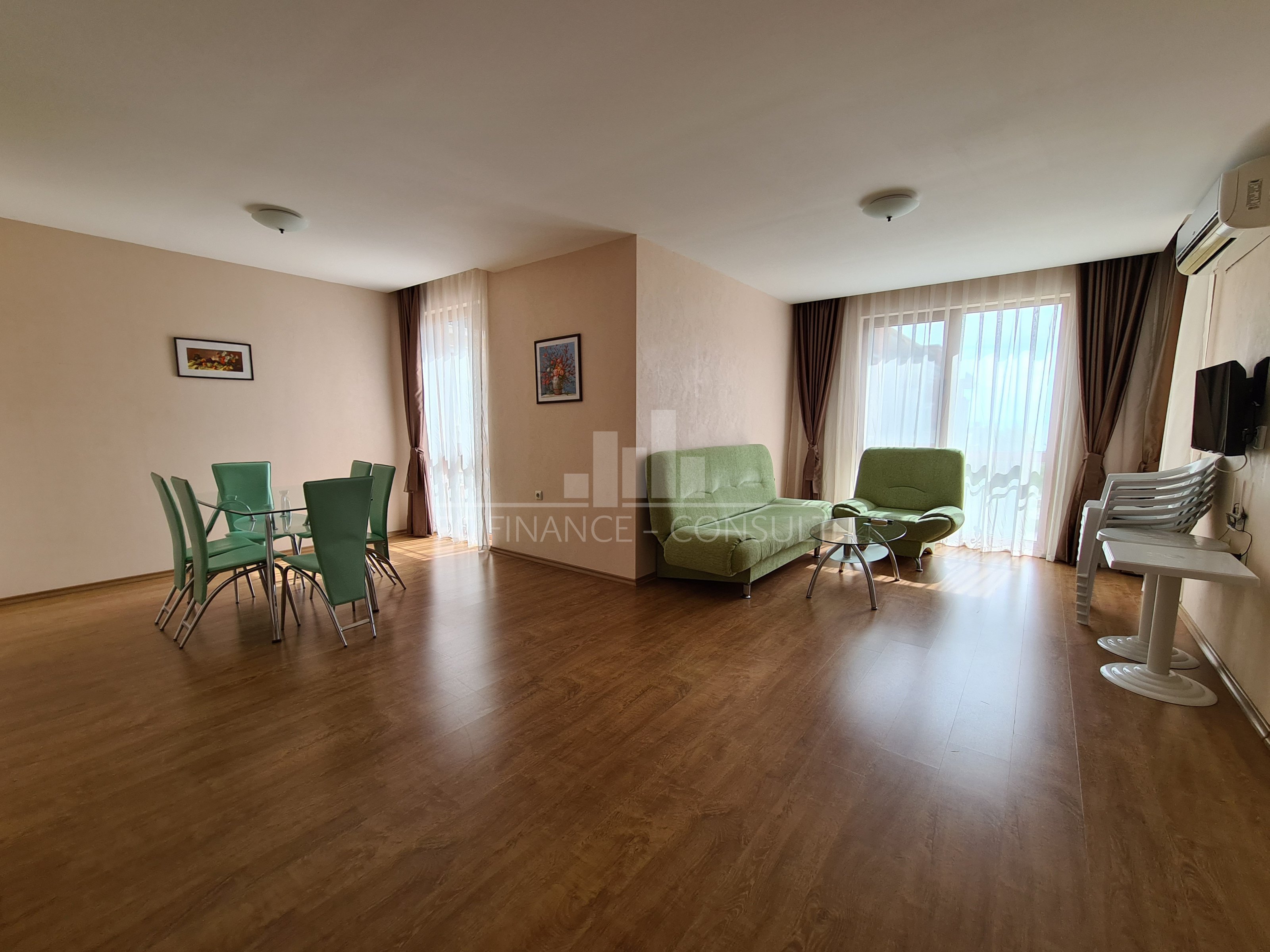 Predstavujeme Vám na predaj nové a kompletne zariadený 3 izbový rodinný luxusný apartmán v tesnej blízkosti pláže s výhľadom na more v Bulharskom letovisku Sveti vlas. Typ nehnuteľnosti: trojizbový • Veľkosť: 128 m2 • Výhľad: na záhradu a bazén, na more • Vzdialenosť od pláže: 10 metrov • Parkovacie miesto: áno, v areáli, na ulici • Kolaudácia: áno • Poplatok za údržbu spoločných priestorov: 14 eur/m2/rok • Možnosť splátok tejto nehnuteľnosti až na 7 rokov: áno • Minimálna požadovaná akontácia: 20% • Rezervačný poplatok: 2000 eur • Možnosť ročného výnosu z investície: áno • Dispozícia: chodba, obývacia izba s kuchynským kútom, dve spálne, kúpeľňa s WC, balkón • Poloha a vybavenie komplexu: bazény, vrátane detského bazéna • reštaurácia s bulharskou/európskou kuchyňou • obchody s potravinami a plážovými doplnkami • vonkajšie fitness vybavenie • vnútorné fitness • sauna • kúpele • detský klub • masážna miestnosť • zdravotnícke stredisko • recepcia • detské a športové ihriská • bezplatné a nestrážené parkovanie • strážené parkovisko • 2 bazénov pre deti i dospelých, vrátane bazéna s toboganom. Pri bazéne je k dispozícii plavčík a lehátka zadarmo • tenisový kurt • stolný futbal • cestovná kancelária • zmenáreň • prenájom auta