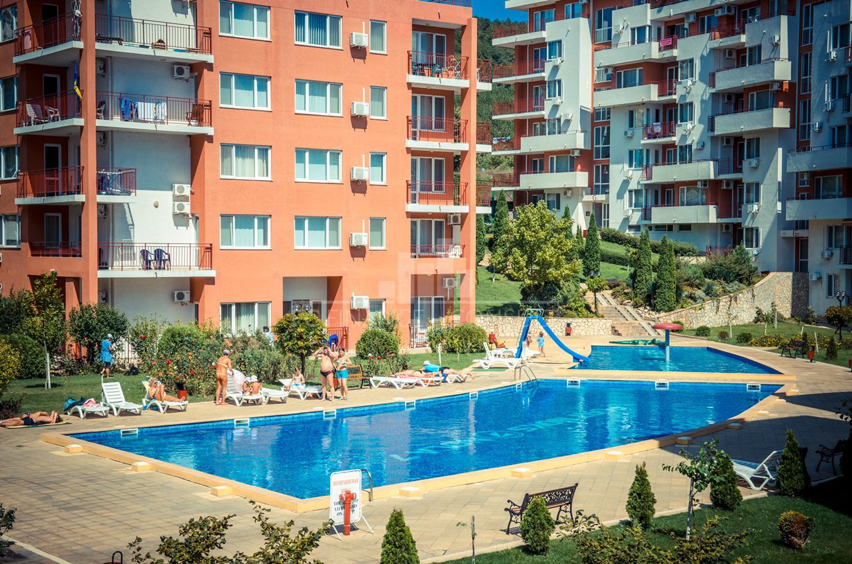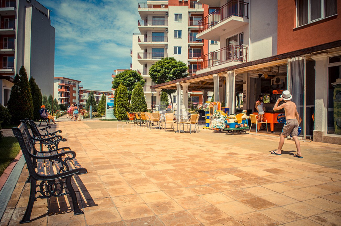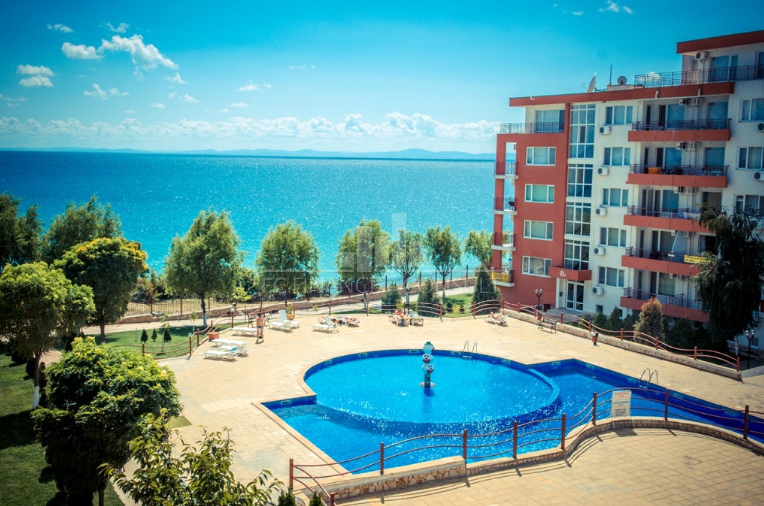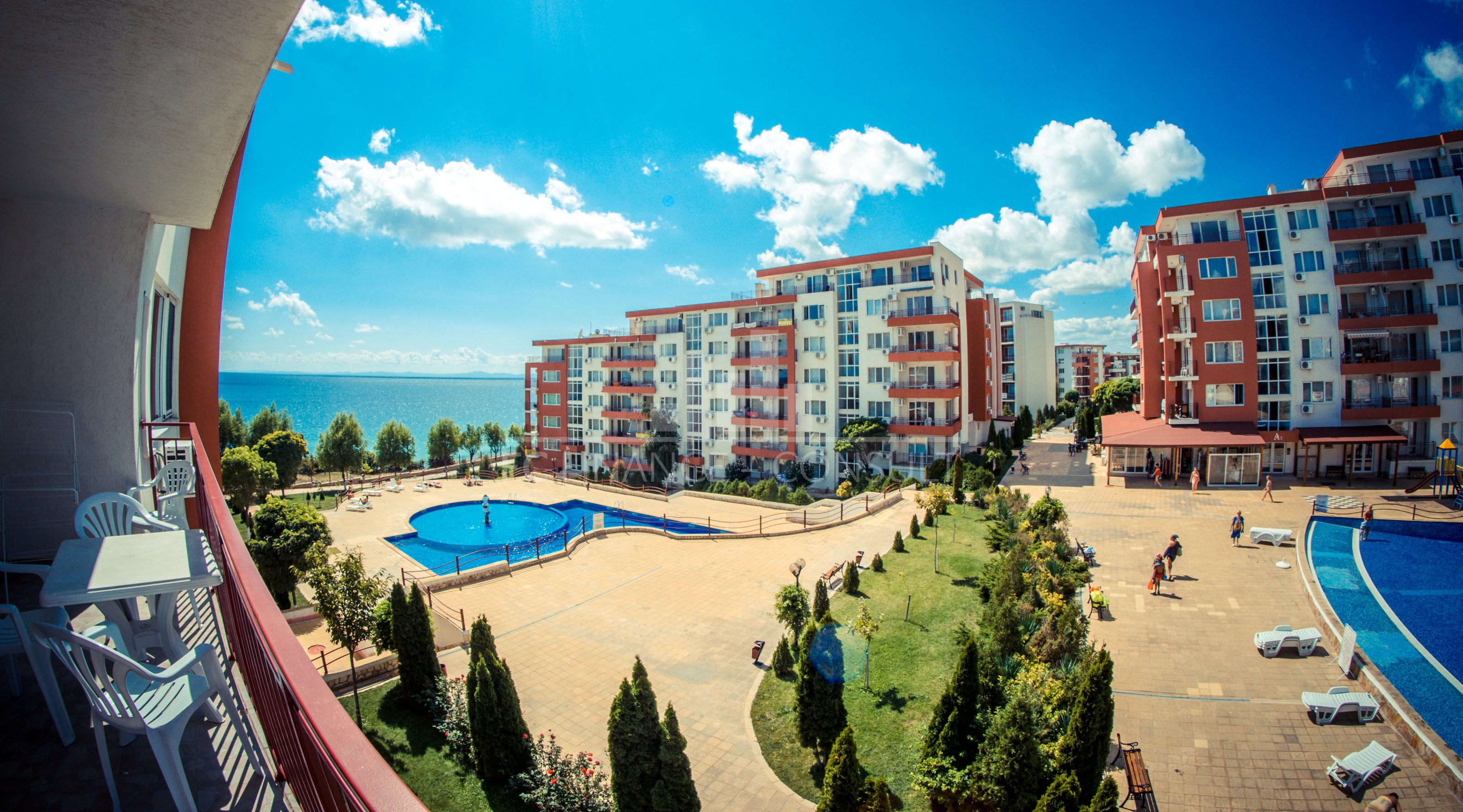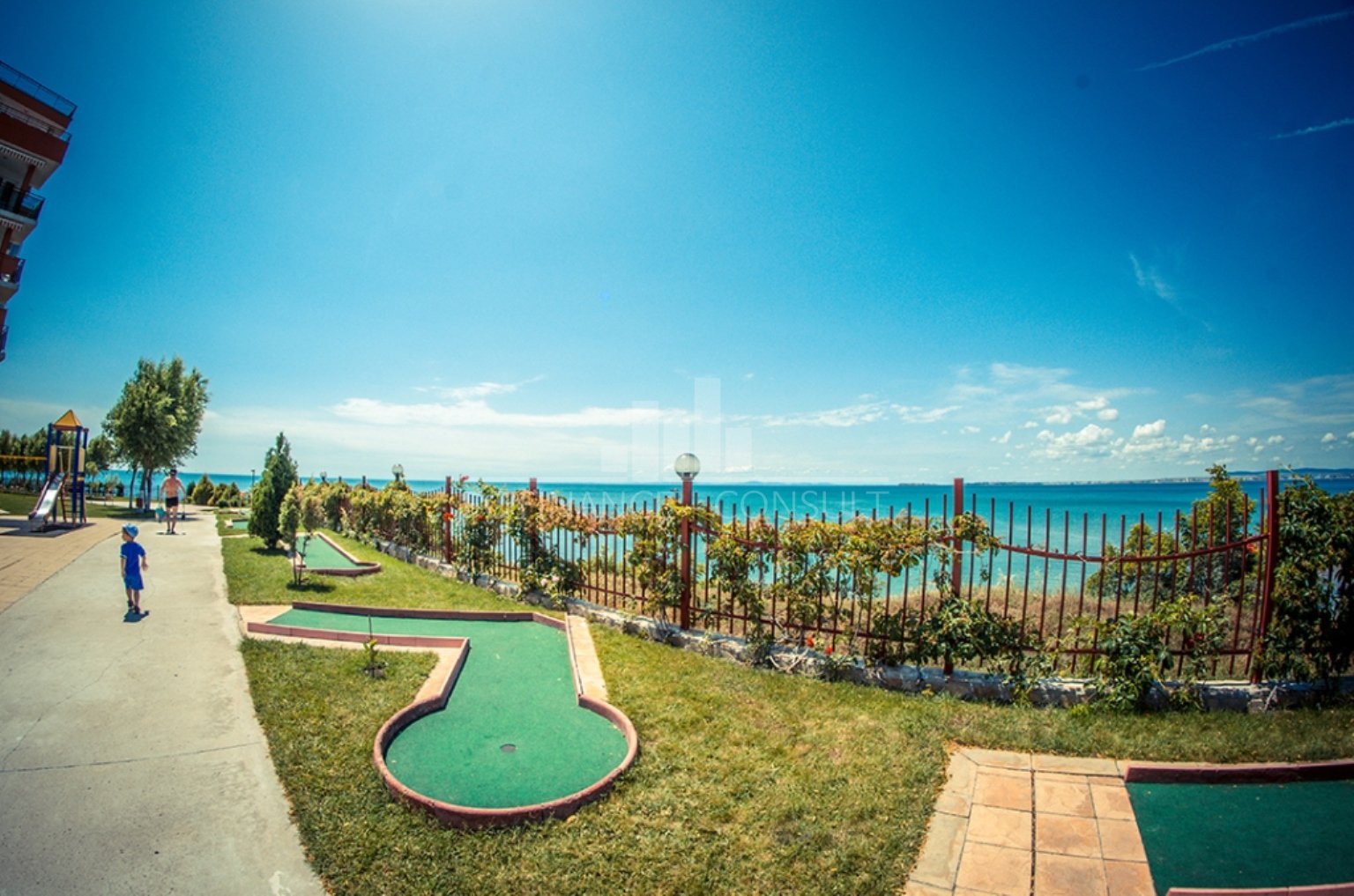 Typ nehnuteľnosti: 3 izb. pri mori aj na splátky • Veľkosť: 100 m2 • Výhľad: na more, na záhradu, na hory • Vzdialenosť od pláže: 10 metrov • Parkovacie miesto: áno, v areáli, na ulici • Kolaudácia: áno • Poplatok za údržbu spoločných priestorov: 14,50 eur/m2/rok • Rezervačný poplatok: 2000 eur • Možnosť financovania nehnuteľnosti až na 7 rokov: nie • Minimálna požadovaná akontácia: 100% • Možnosť ročného výnosu z investície: áno • Dispozícia: chodba, obývacia izba s kuchynským kútom, dve spe spálne, kúpeľňa s WC(2), balkón • Poloha a vybavenie komplexu: bazény, vrátane detského bazéna • reštaurácia s bulharskou/európskou kuchyňou • obchody s potravinami a plážovými doplnkami • vonkajšie fitness vybavenie • vnútorné fitness • sauna • kúpele • detský klub • masážna miestnosť • zdravotnícke stredisko • recepcia • detské a športové ihriská • bezplatné a strážené parkovanie • strážené parkovisko • 17 bazénov pre deti i dospelých, vrátane bazéna s umelým vlnobitím a toboganom. Pri bazéne je k dispozícii plavčík a lehátka zadarmo • tenisový kurt • stolný futbal • minigolf • biliard a stolný tenis • počítačové hry pre deti.