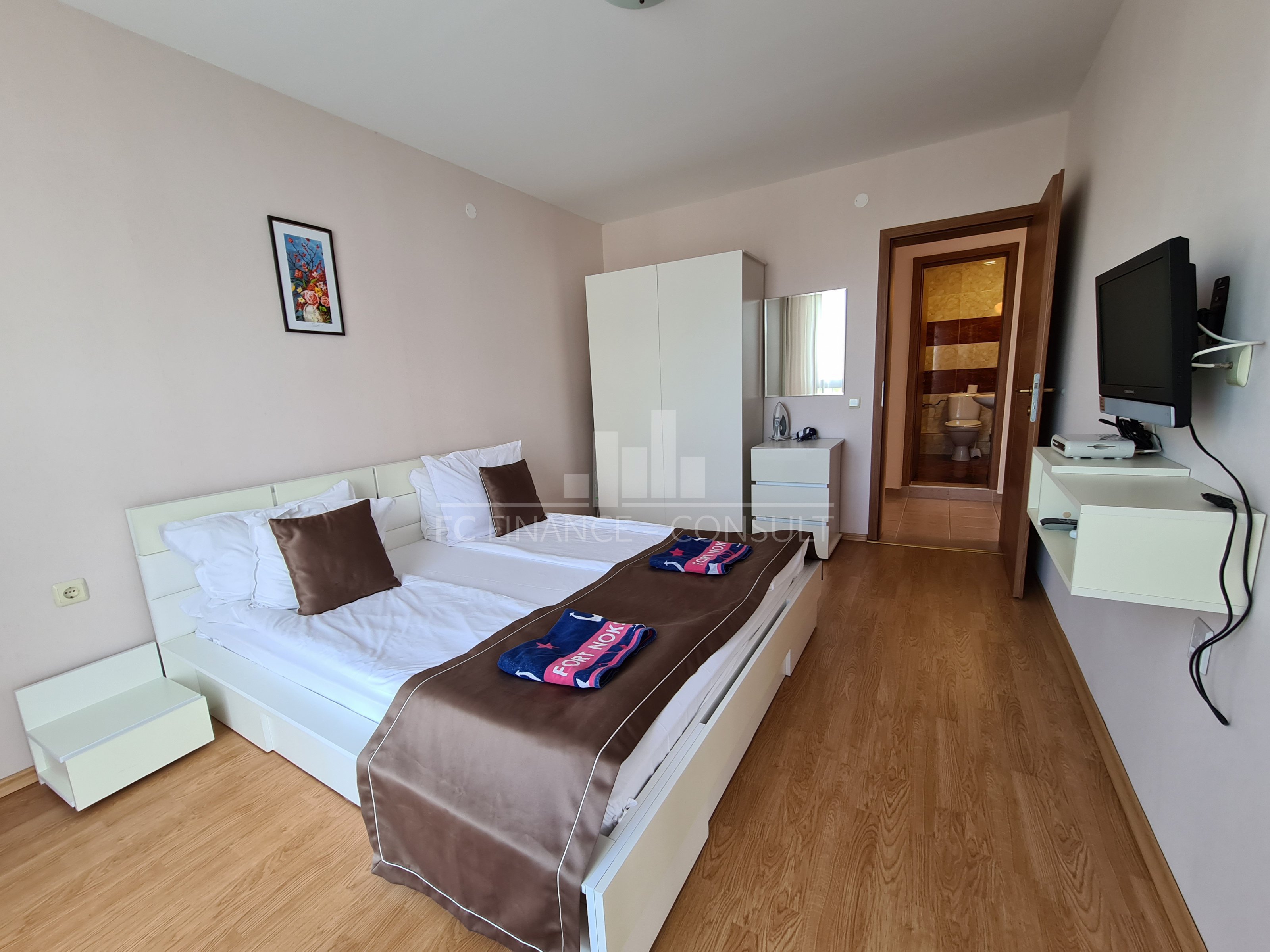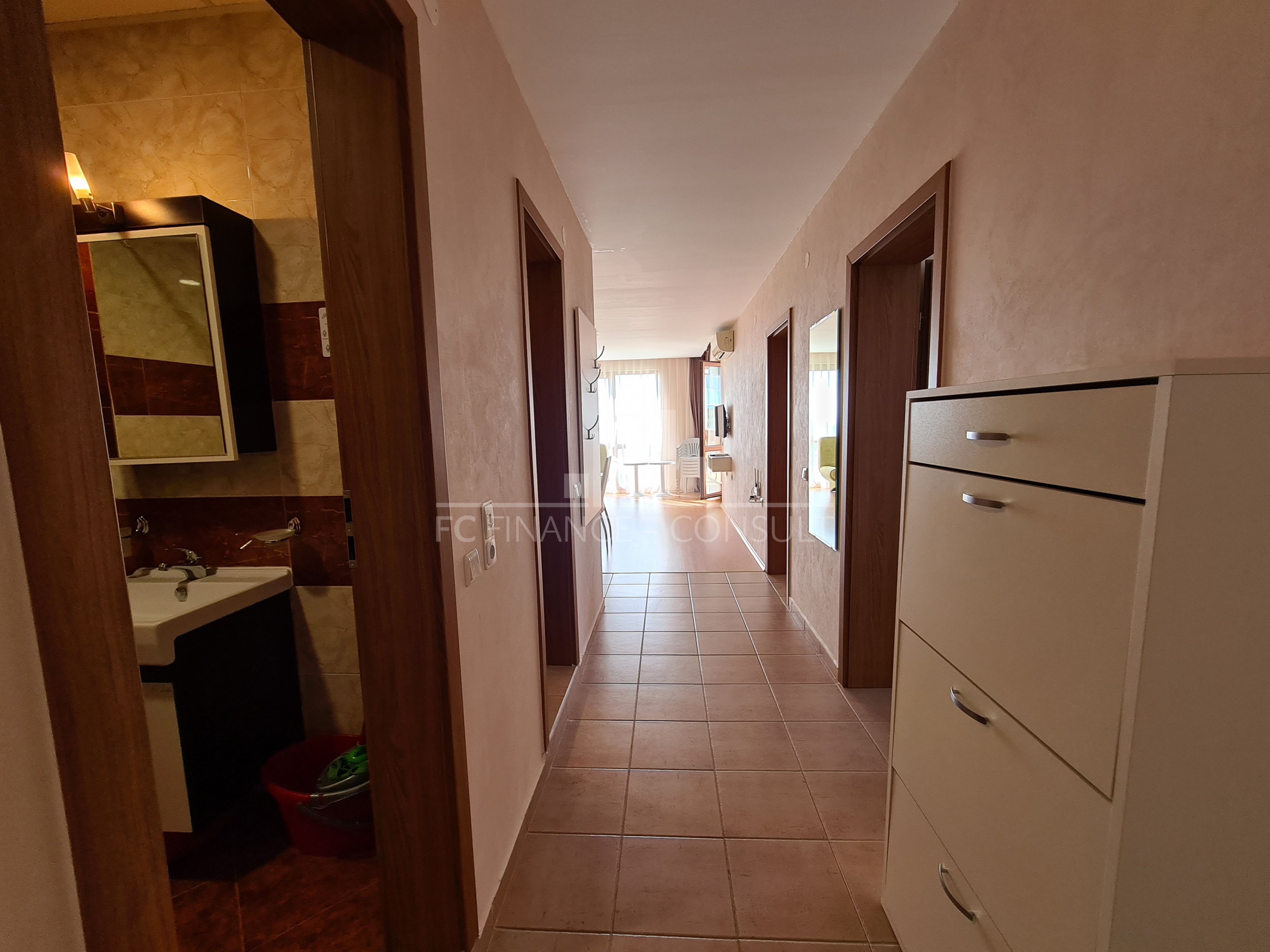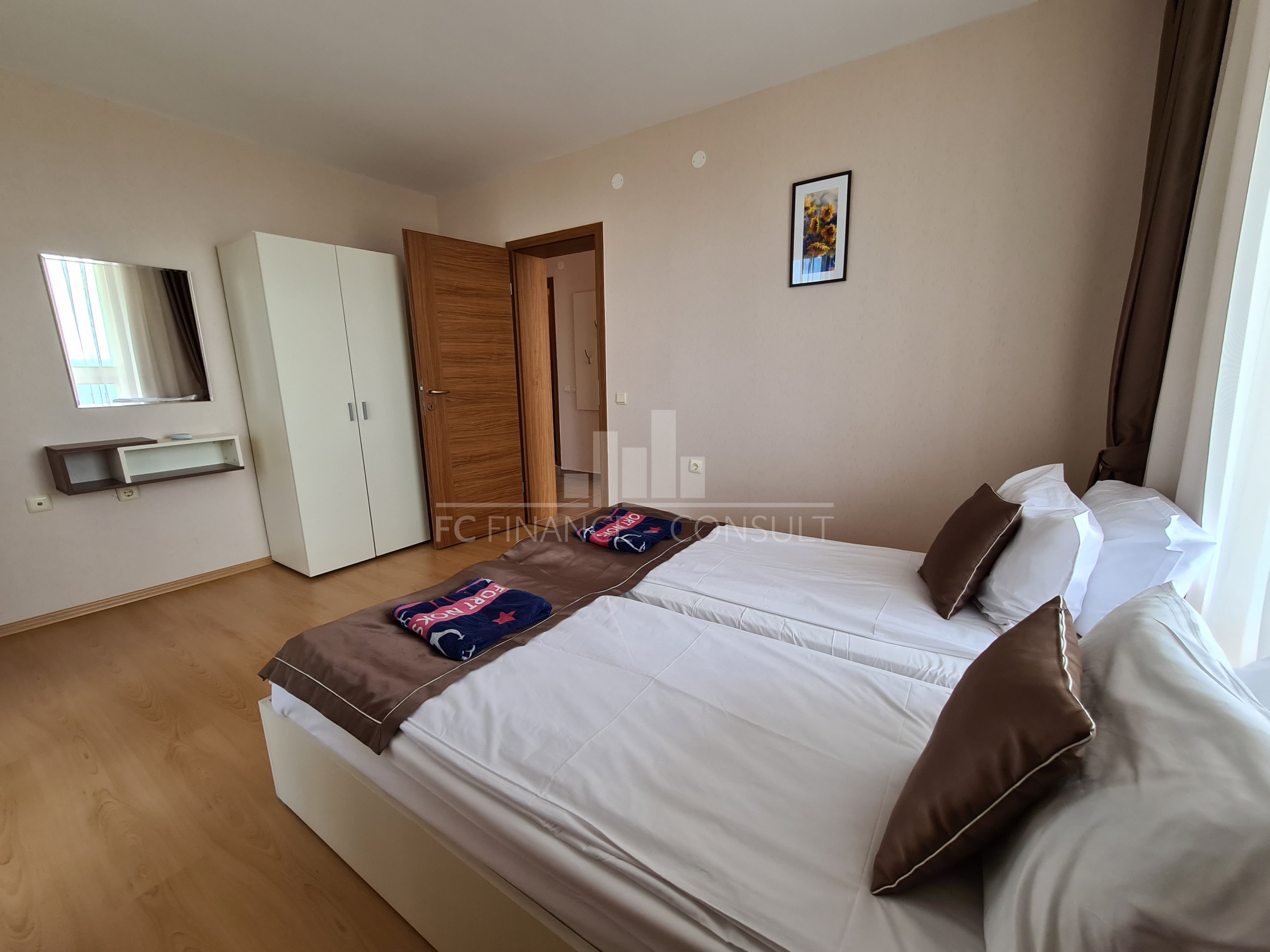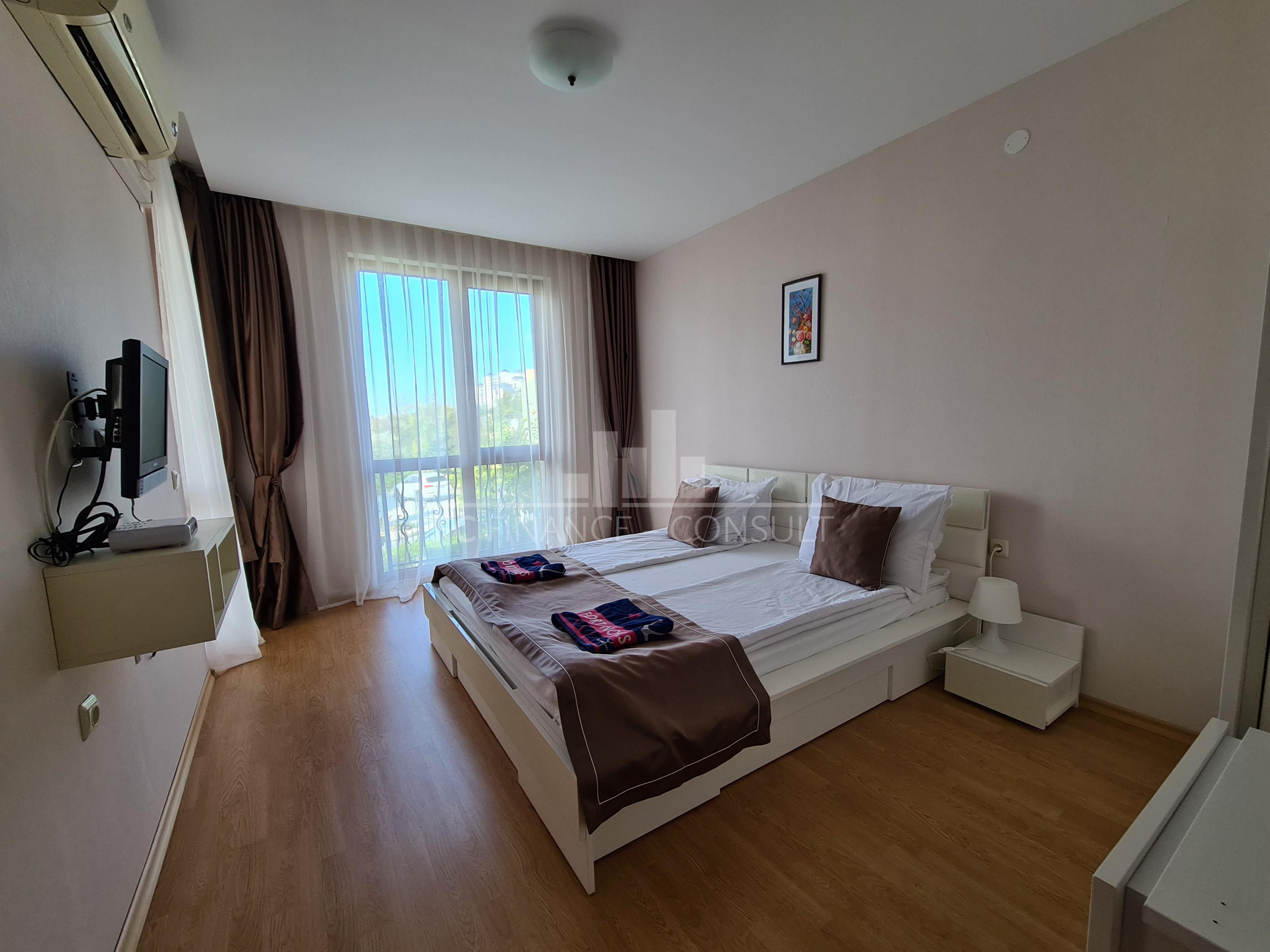 Typ nehnuteľnosti: trojizbový, Veľkosť: 109 m2 Podlažie: 1. poschodie z 5. Výťah: áno. Výhľad: na záhradu a bazén, na more, k bazénu, na hory. Vzdialenosť od pláže: 10 metrov Vybavenie: áno Parkovacie miesto: áno, v areáli, na ulici Kolaudácia: áno Poplatok za údržbu spoločných priestorov: 15 eur/m2/rok Možnosť splátok tejto nehnuteľnosti až na 7 rokov: áno. Možnosť financovania nehnuteľnosti až na 7 rokov. Minimálna požadovaná akontácia: 50000 eur Rezervačný poplatok: 2000 eur. Možnosť ročného garantovaného výnosu z investície: nie Dispozícia: chodba, obývacia izba s kuchynským kútom, dve spálne, kúpeľňa s WC, balkón Poloha a vybavenie komplexu: -komplex sa nachádza na pláži. Komplex ďalej ponúka: - bazény, vrátane detského bazéna - reštaurácia s bulharskou/európskou kuchyňou; - obchody s potravinami a plážovými doplnkami; - vonkajšie fitness vybavenie; - sauna; - masážna miestnosť; - zdravotnícke stredisko; - zmenáreň; - cestovná kancelária; - prenájom auta; - detské a športové ihriská; - bezplatné a strážené parkovanie; - 2 bazénov pre deti i dospelých, lehátka zadarmo; - recepcia.
