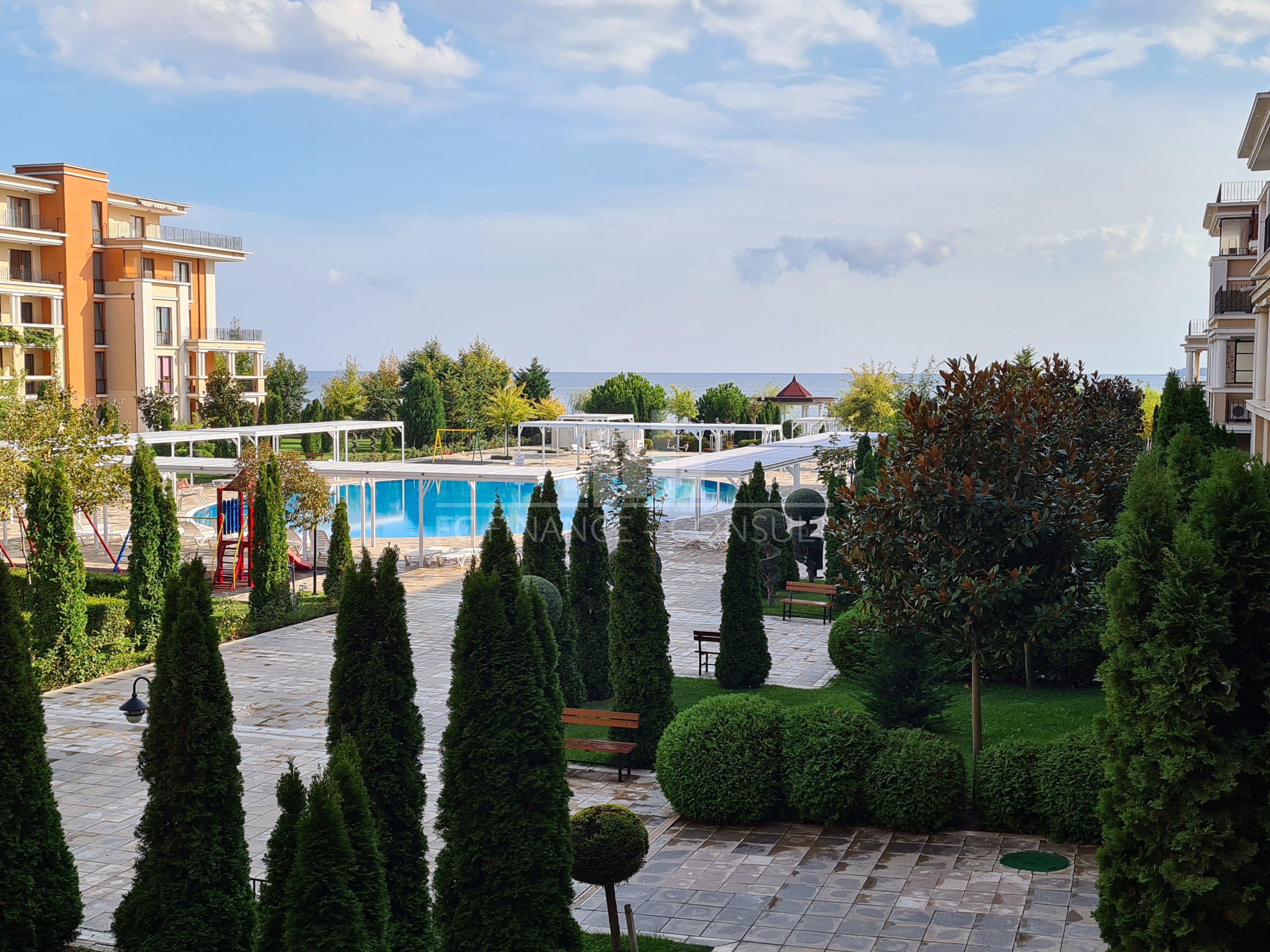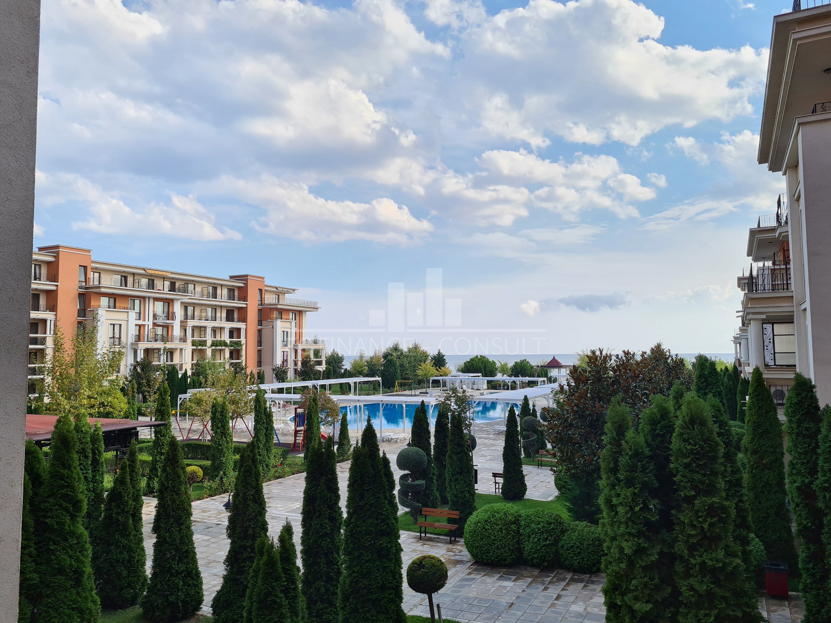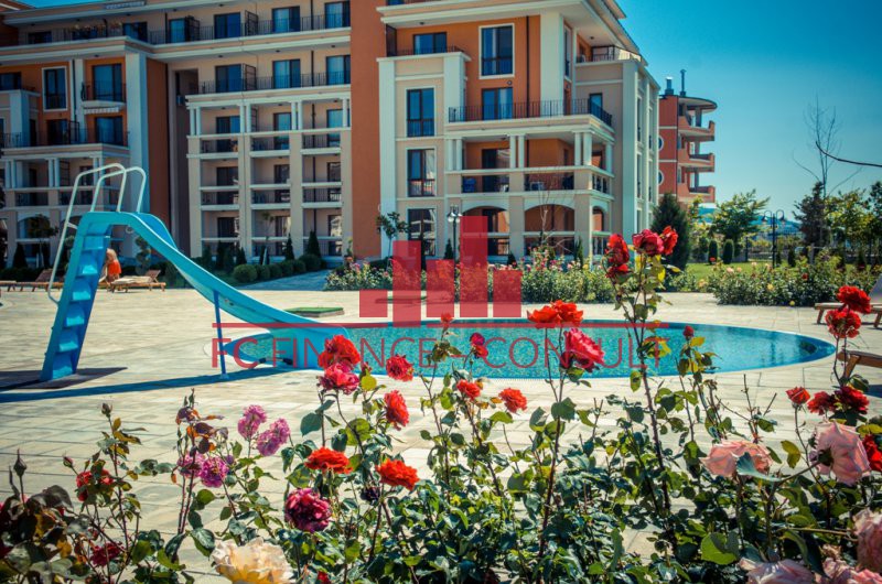 Luxusný byt s výhľadom na more a na bazén v Bulharskom letovisku Sveti vlas. Typ nehnuteľnosti: 3 - jizbový • Veľkosť: 103 m2 • Výhľad: na záhradu a bazén, na more • Vzdialenosť od pláže: 10 metrov • Parkovacie miesto: áno, v areáli, na ulici • Kolaudácia: áno • Poplatok za údržbu spoločných priestorov: 14 eur/m2/rok • Možnosť splátok tejto nehnuteľnosti až na 7 rokov: áno • Minimálna požadovaná akontácia: 20% • Rezervačný poplatok: 2000 eur • Možnosť ročného výnosu z investície: áno • Dispozícia: chodba, obývacia izba s kuchynským kútom, 2 spálne, kúpeľňa s WC, balkón • Poloha a vybavenie komplexu: bazény, vrátane detského bazéna • reštaurácia s bulharskou/európskou kuchyňou • obchody s potravinami a plážovými doplnkami • vonkajšie fitness vybavenie • vnútorné fitness • sauna • kúpele • detský klub • masážna miestnosť • zdravotnícke stredisko • recepcia • detské a športové ihriská • bezplatné a nestrážené parkovanie • strážené parkovisko • 2 bazénov pre deti i dospelých, vrátane bazéna s toboganom. Pri bazéne je k dispozícii plavčík a lehátka zadarmo • tenisový kurt • stolný futbal • cestovná kancelária • zmenáreň • prenájom auta