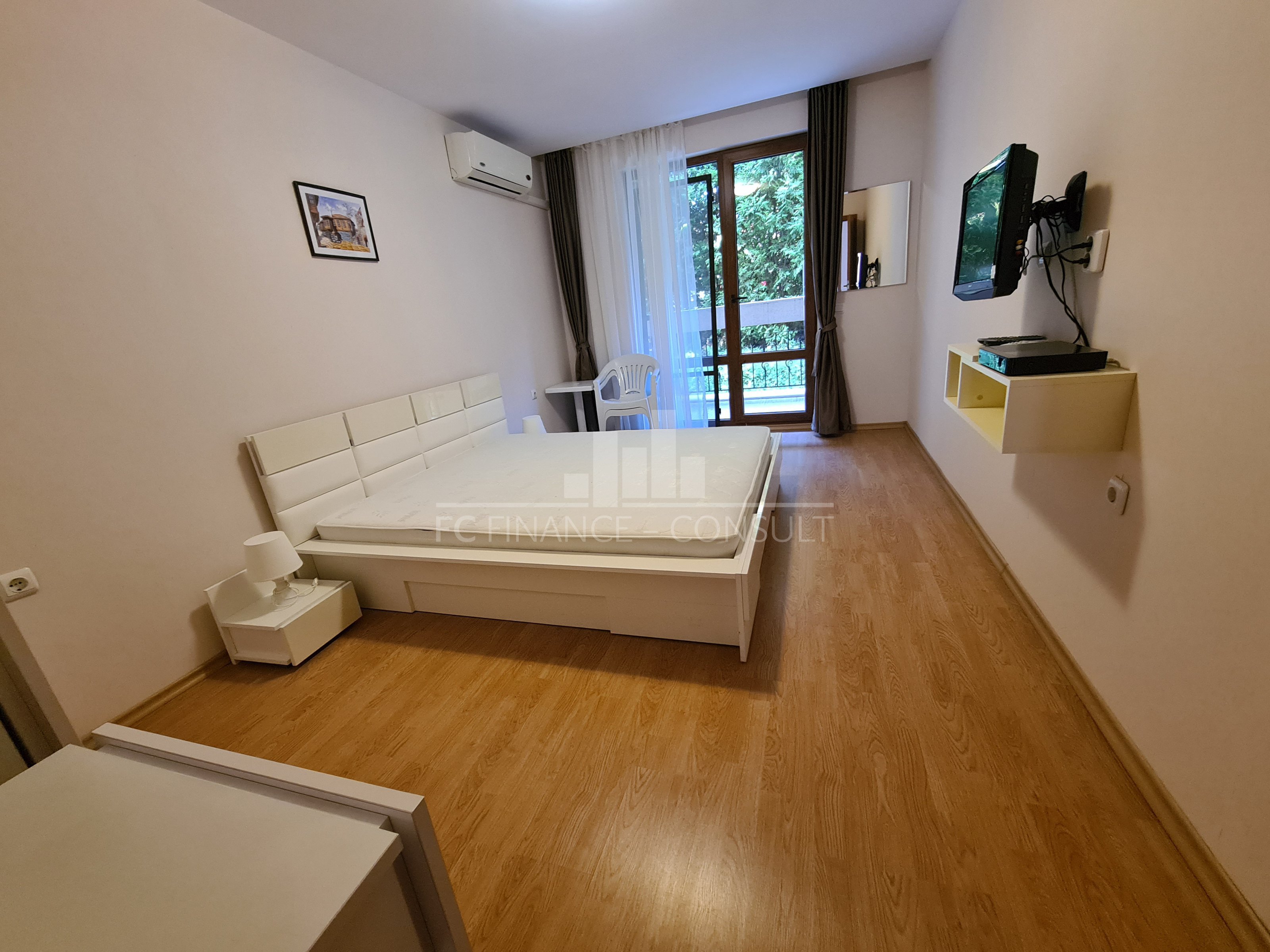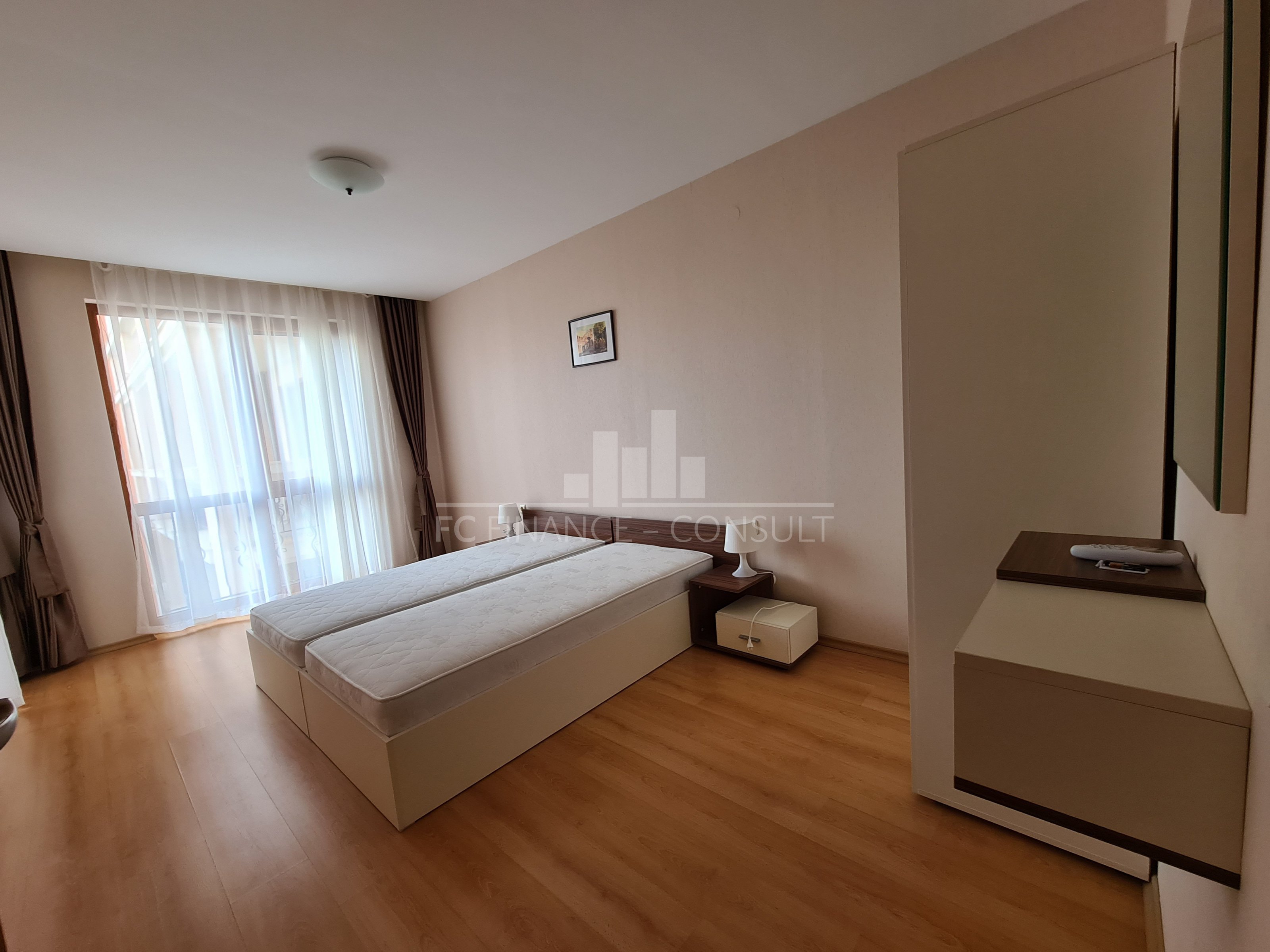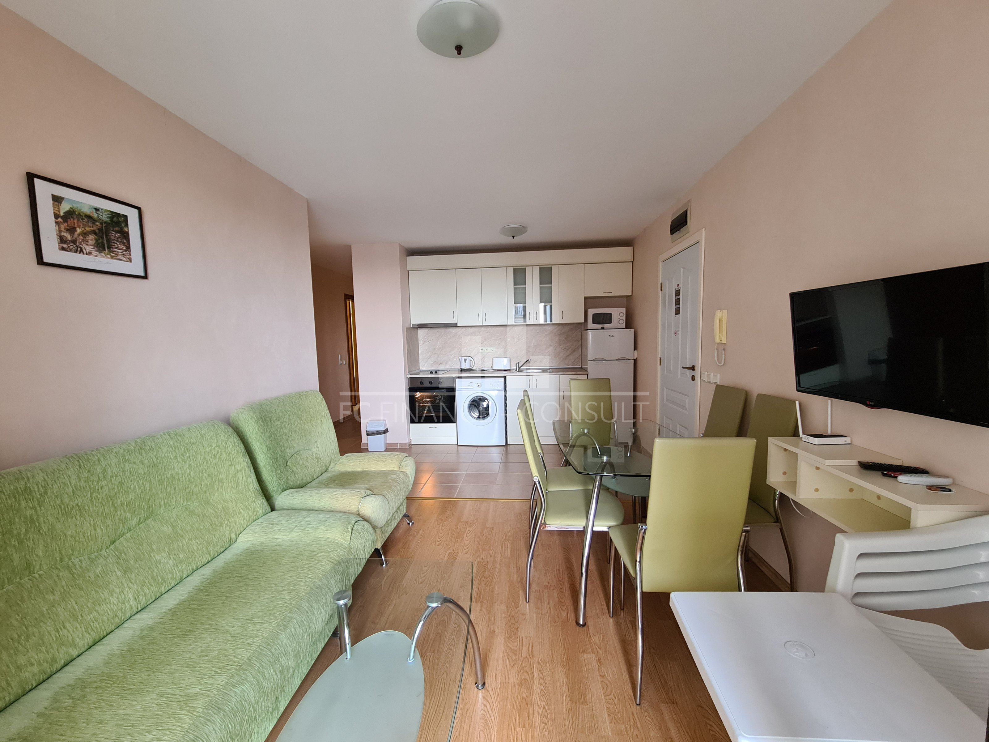 Luxusný byt s výhľadom na more a na bazén v Bulharskom letovisku Sveti vlas. Typ nehnuteľnosti: 3 - jizbový • Veľkosť: 103 m2 • Výhľad: na záhradu a bazén, na more • Vzdialenosť od pláže: 10 metrov • Parkovacie miesto: áno, v areáli, na ulici • Kolaudácia: áno • Poplatok za údržbu spoločných priestorov: 14 eur/m2/rok • Možnosť splátok tejto nehnuteľnosti až na 7 rokov: áno • Minimálna požadovaná akontácia: 20% • Rezervačný poplatok: 2000 eur • Možnosť ročného výnosu z investície: áno • Dispozícia: chodba, obývacia izba s kuchynským kútom, 2 spálne, kúpeľňa s WC, balkón • Poloha a vybavenie komplexu: bazény, vrátane detského bazéna • reštaurácia s bulharskou/európskou kuchyňou • obchody s potravinami a plážovými doplnkami • vonkajšie fitness vybavenie • vnútorné fitness • sauna • kúpele • detský klub • masážna miestnosť • zdravotnícke stredisko • recepcia • detské a športové ihriská • bezplatné a nestrážené parkovanie • strážené parkovisko • 2 bazénov pre deti i dospelých, vrátane bazéna s toboganom. Pri bazéne je k dispozícii plavčík a lehátka zadarmo • tenisový kurt • stolný futbal • cestovná kancelária • zmenáreň • prenájom auta