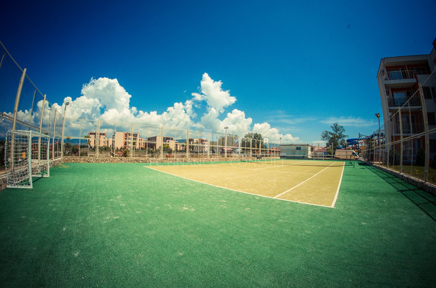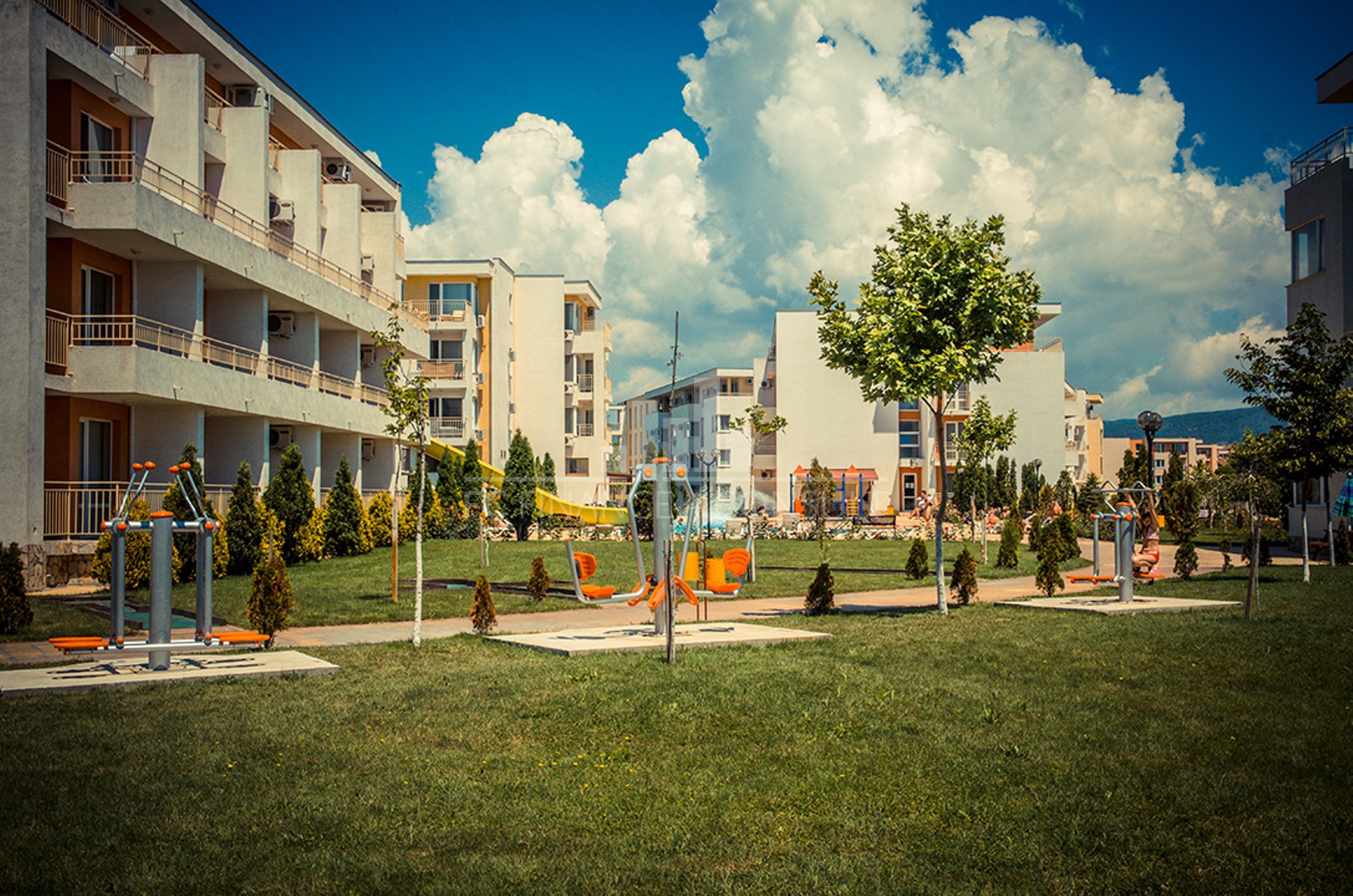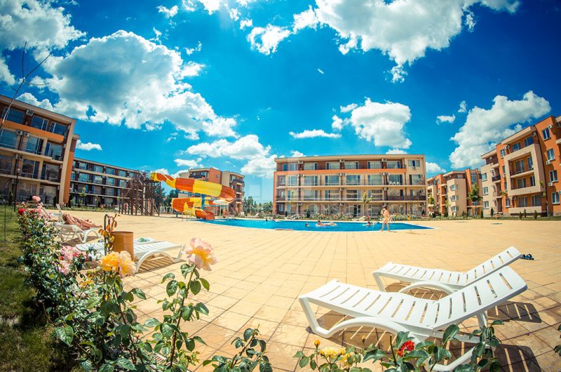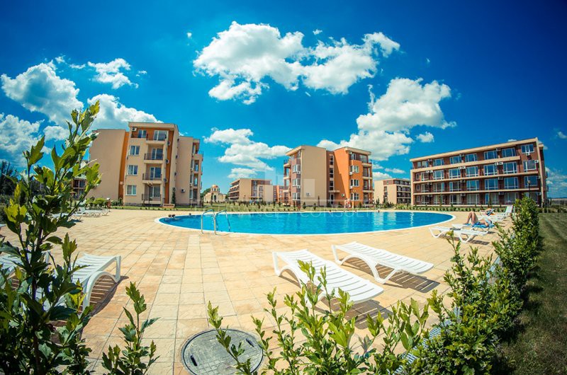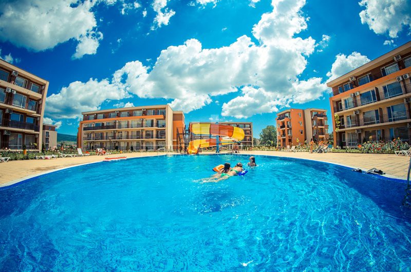 Na predaj 2-izb apartmán 63m2, Grand rezort-Nesebar Fort, 600m od mora. • Výhľad: na záhradu a bazén • Vzdialenosť od pláže: 600 metrov • Parkovacie miesto: áno, v podzemnom parkovisku, v areáli, na ulici • Kolaudácia: áno • Poplatok za údržbu spoločných priestorov: 13,50 eur/m2/rok • Rezervačný poplatok: 2000 eur • Možnosť ročného výnosu z investície: áno • Dispozícia: chodba, obývacia izba s kuchynským kútom, spálňa, kúpeľňa s WC, balkón • Poloha a vybavenie komplexu: bazény, vrátane detského bazéna • reštaurácia s bulharskou/európskou kuchyňou • obchody s potravinami a plážovými doplnkami • vonkajšie fitness vybavenie • sauna • detský klub • masážna miestnosť • zdravotnícke stredisko • recepcia • detské a športové ihriská • bezplatné a nestrážené parkovanie • strážené parkovisko • 9 bazénov pre deti i dospelých, vrátane 2 bazény s toboganom a lehátka zadarmo • tenisový kurt • stolný futbal • minigolf • biliard a stolný tenis
