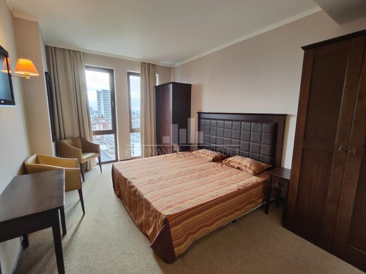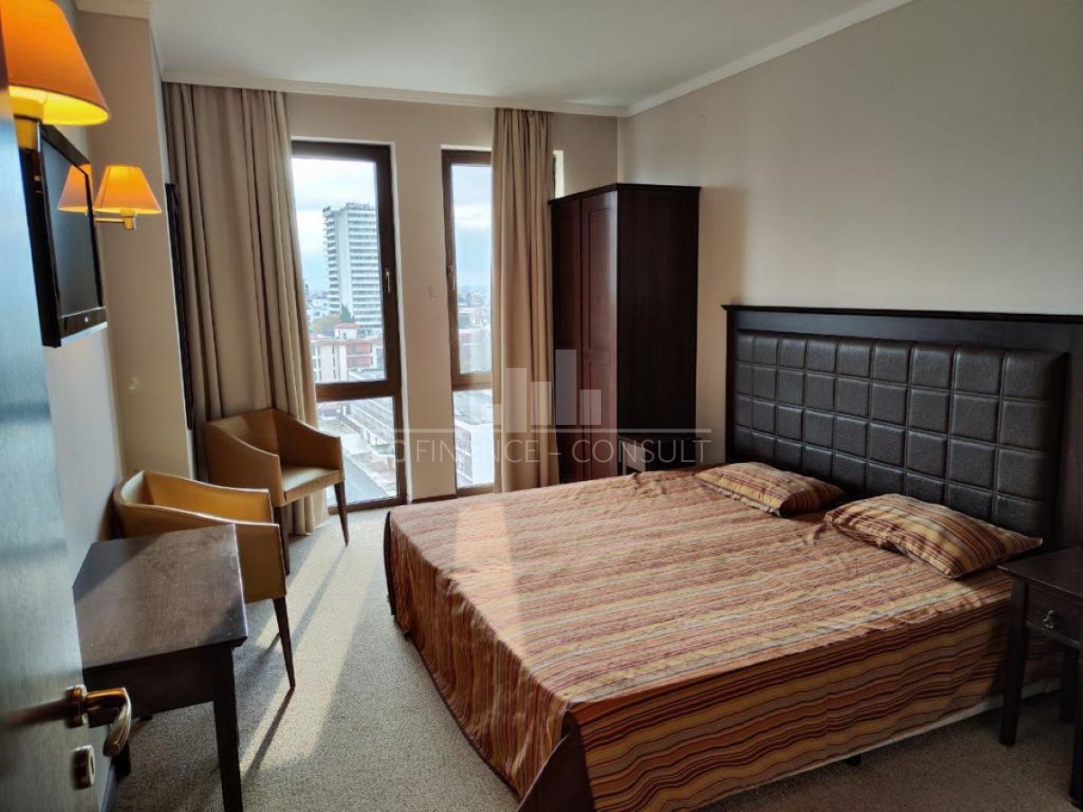 yp nehnuteľnosti: dvojizbový • Veľkosť: 75 m2 • Výhľad: na záhradu a bazén, na more, k bazénu, na hory • Vzdialenosť od pláže: 100 metrov • Parkovacie miesto: áno, v podzemnom parkovisku, v areáli, na ulici • Kolaudácia: áno • Poplatok za údržbu spoločných priestorov: 15 eur/m2/rok • Rezervačný poplatok: 2000 eur • Možnosť ročného výnosu z investície: áno • Dispozícia: chodba, obývacia izba s kuchynským kútom, spálňa, kúpeľňa s WC, balkón • Poloha a vybavenie komplexu: bazény, vrátane detského bazéna; reštaurácia s bulharskou/európskou kuchyňou; obchody s potravinami a plážovými doplnkami; vonkajšie fitness vybavenie; vnútorné fitness; sauna; kúpele, turecký kúpeľ; detský klub; masážna miestnosť; zdravotnícke stredisko; zmenáreň; recepcia; prenájom auta; detské a športové ihriská; parkovanie; strážené parkovisko.