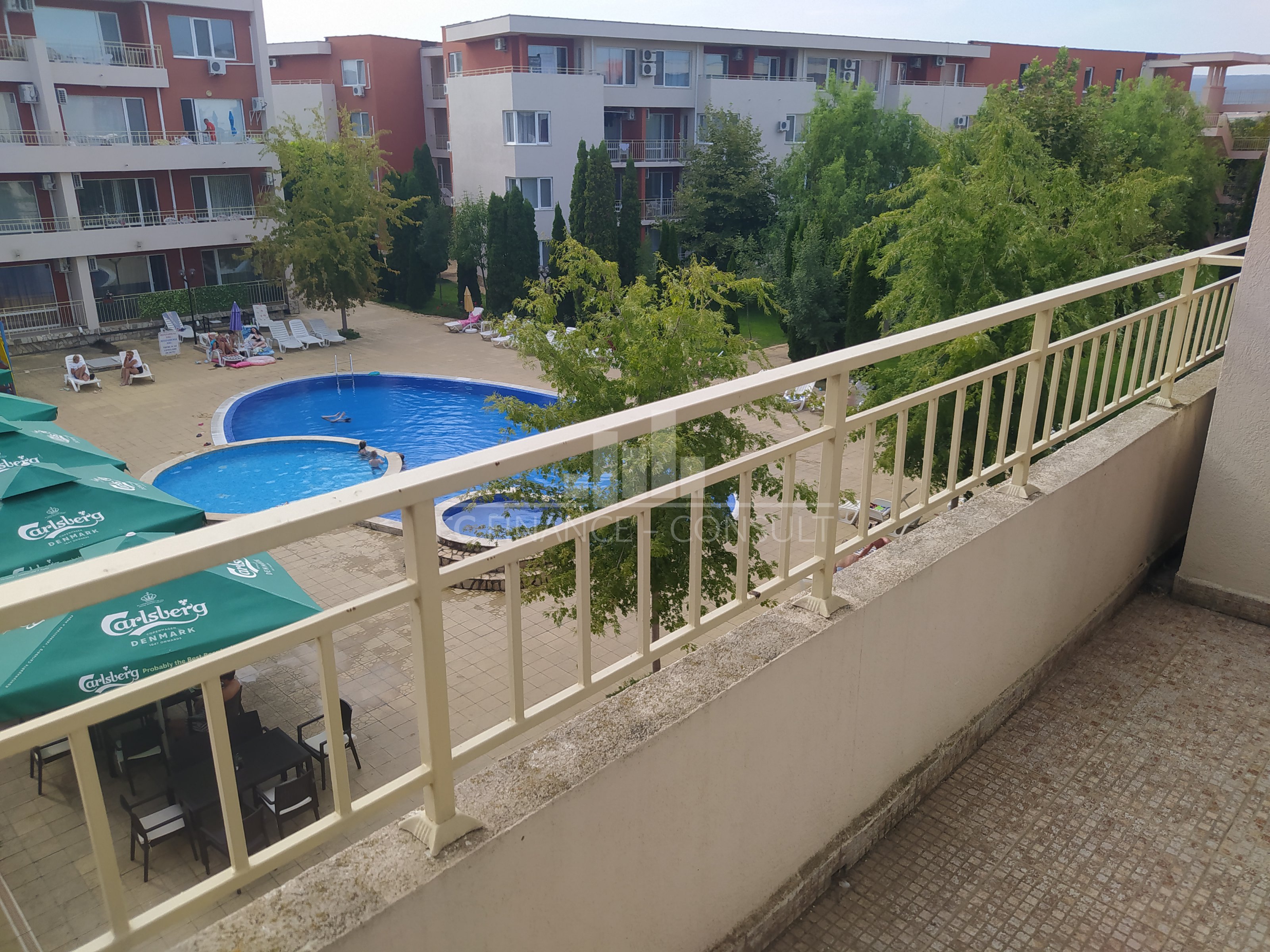 Na predaj štúdio apartmán 40m2, Grand rezort, 600m od mora. • Výhľad: na záhradu a k bazénu • Vzdialenosť od pláže: 600 metrov • Parkovacie miesto: áno, v podzemnom parkovisku, v areáli, na ulici • Kolaudácia: áno • Poplatok za údržbu spoločných priestorov: 13,50 eur/m2/rok • Možnosť splátok tejto nehnuteľnosti až na 7 rokov: nie • Minimálna požadovaná akontácia: 100% • Rezervačný poplatok: 2000 eur • Možnosť ročného výnosu z investície: áno • Dispozícia: chodba, obývacia izba s kuchynským kútom, kúpeľňa s WC, balkón • Poloha a vybavenie komplexu: bazény, vrátane detského bazéna • reštaurácia s bulharskou/európskou kuchyňou • obchody s potravinami a plážovými doplnkami • vonkajšie fitness vybavenie • sauna • detský klub • masážna miestnosť • zdravotnícke stredisko • recepcia • detské a športové ihriská • bezplatné a nestrážené parkovanie • strážené parkovisko • 9 bazénov pre deti i dospelých, vrátane 2 bazény s toboganom a lehátka zadarmo • tenisový kurt • stolný futbal • minigolf • biliard a stolný tenis