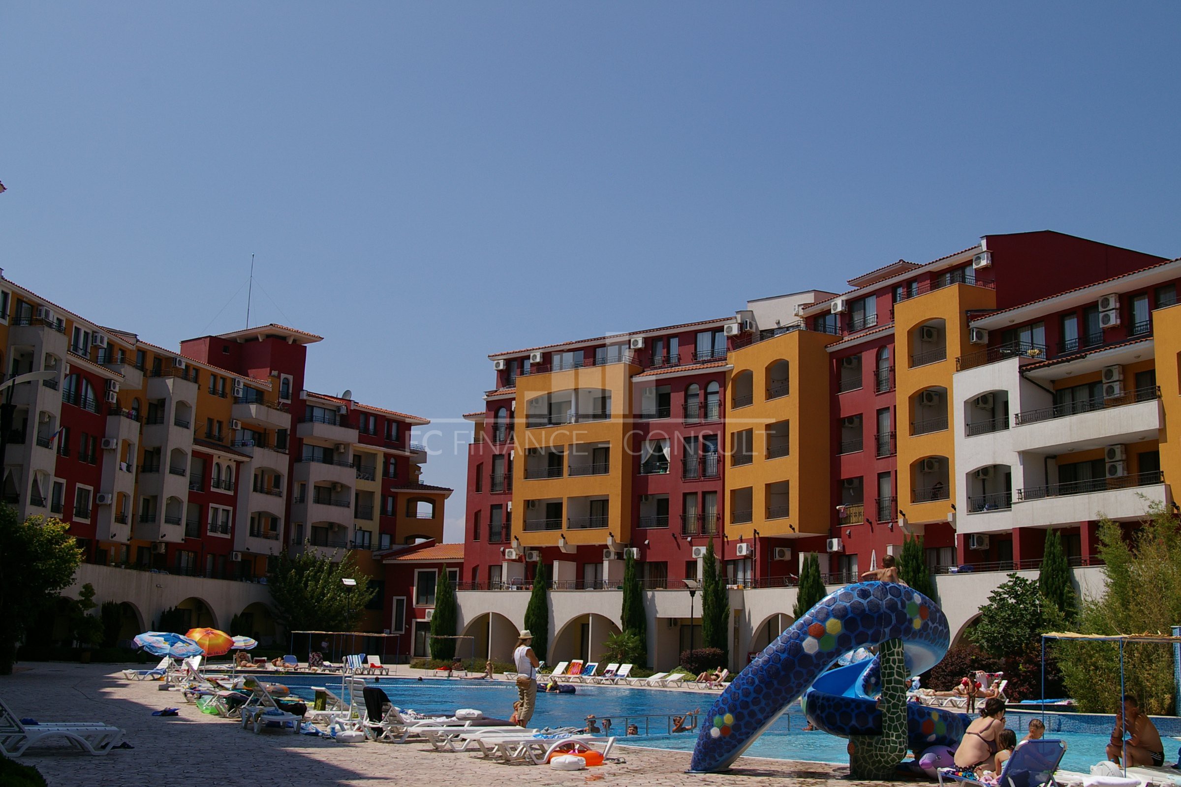 Štúdio apartmán 35m2 priamo pri mori v krásnom zálive Aheloy v Bulharsku • Výhľad: na záhradu • Vzdialenosť od pláže: 10 metrov • Parkovacie miesto: áno, v areáli, na ulici • Kolaudácia: áno • Poplatok za údržbu spoločných priestorov: 12 eur/m2/rok • Rezervačný poplatok: 2000 eur • Možnosť ročného výnosu z investície: áno • Dispozícia: chodba, obývacia izba s kuchynským kútom, kúpeľňa s WC, balkón • Poloha a vybavenie komplexu: bazény, vrátane detského bazéna • reštaurácia s bulharskou/európskou kuchyňou • obchody s potravinami a plážovými doplnkami • vnútorné fitness • sauna • kúpele • detský klub • masážna miestnosť • zdravotnícke stredisko • recepcia • detské a športové ihriská • bezplatné parkovanie • strážené parkovisko • 2 bazénov pre deti i dospelých, pri bazéne je k dispozícii plavčík a lehátka zadarmo • stolný futbal • biliard a stolný tenis • cestovná kancelária • squash