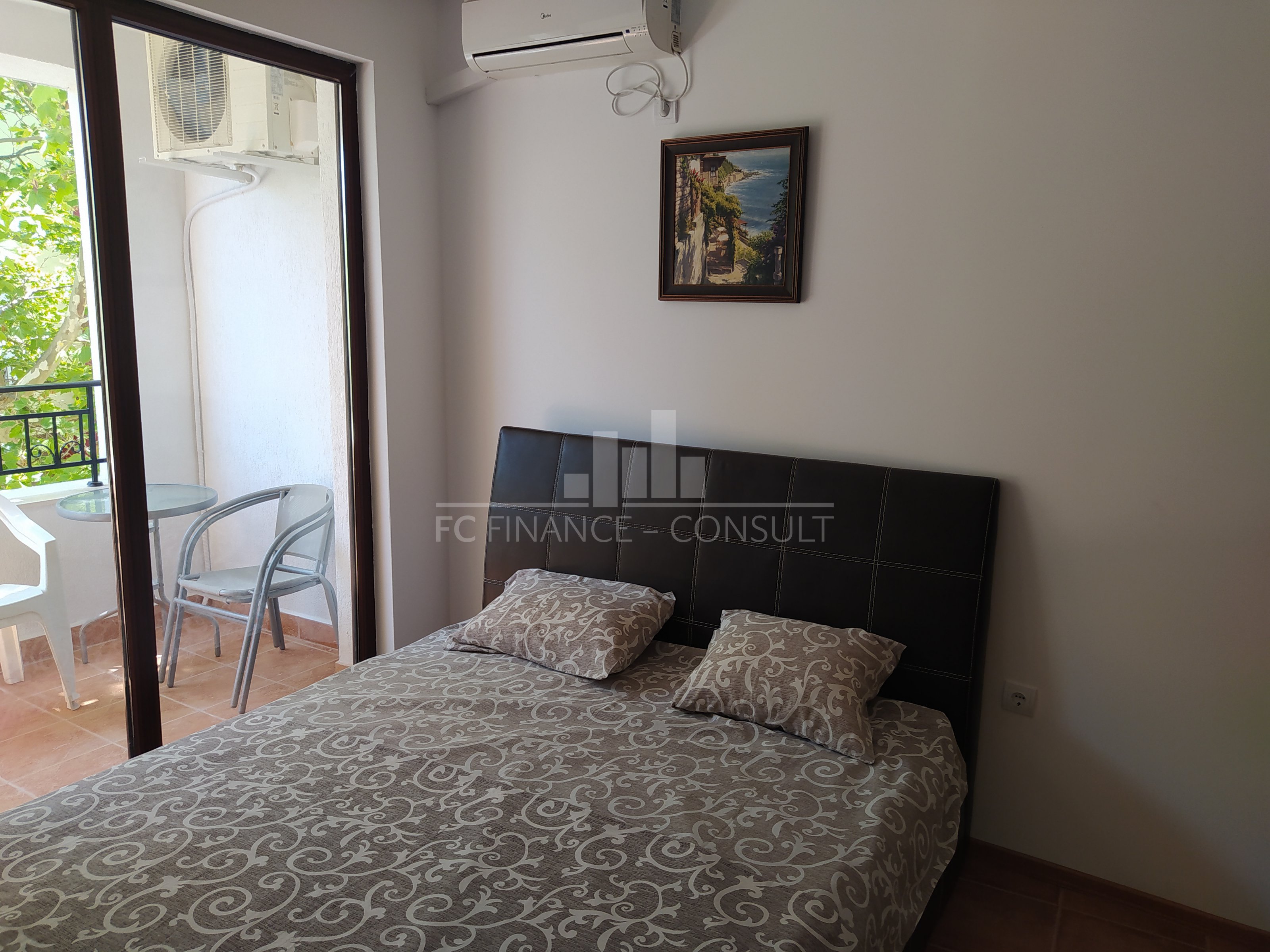 Štúdio apartmán 35m2 priamo pri mori v krásnom zálive Aheloy v Bulharsku • Výhľad: na záhradu a bazén • Vzdialenosť od pláže: 10 metrov • Parkovacie miesto: áno, v areáli, na ulici • Kolaudácia: áno • Poplatok za údržbu spoločných priestorov: 12 eur/m2/rok • Rezervačný poplatok: 2000 eur • Možnosť ročného výnosu z investície: áno • Dispozícia: chodba, obývacia izba s kuchynským kútom, kúpeľňa s WC, balkón • Poloha a vybavenie komplexu: bazény, vrátane detského bazéna • reštaurácia s bulharskou/európskou kuchyňou • obchody s potravinami a plážovými doplnkami • vnútorné fitness • sauna • kúpele • detský klub • masážna miestnosť • zdravotnícke stredisko • recepcia • detské a športové ihriská • bezplatné parkovanie • strážené parkovisko • 2 bazénov pre deti i dospelých, pri bazéne je k dispozícii plavčík a lehátka zadarmo • stolný futbal • biliard a stolný tenis • cestovná kancelária • squash