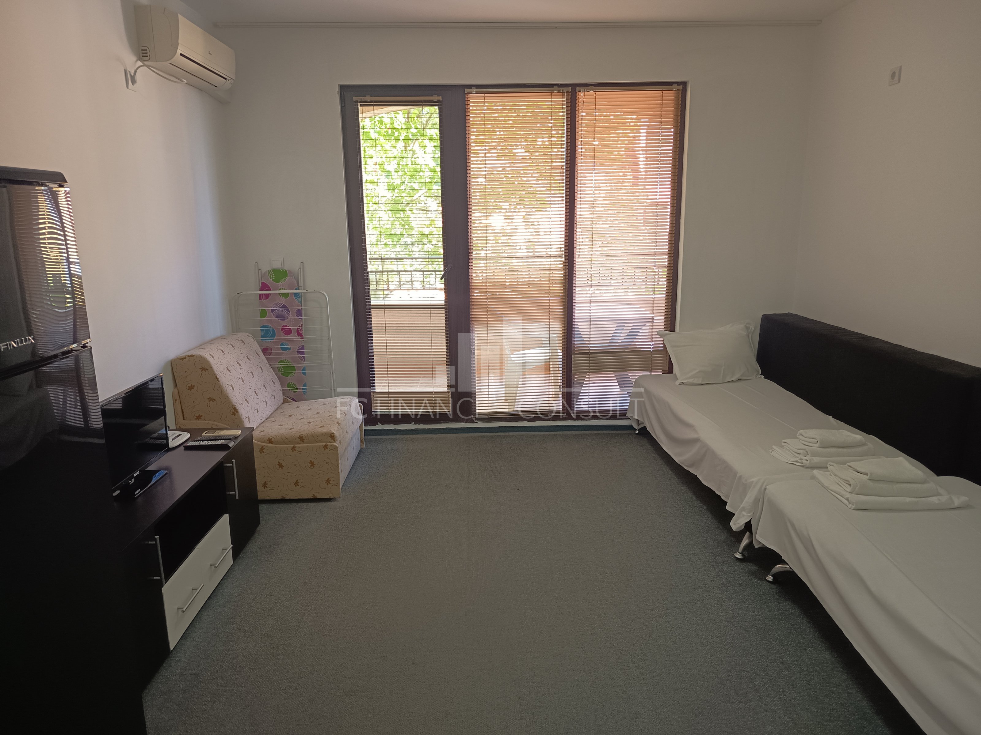 Štúdio apartmán s výhľadom na more a bazén 48 m2 priamo pri mori v krásnom zálive Aheloy v Bulharsku • Výhľad: na záhradu • Vzdialenosť od pláže: 10 metrov • Parkovacie miesto: áno, v areáli, na ulici • Kolaudácia: áno • Poplatok za údržbu spoločných priestorov: 12 eur/m2/rok • Rezervačný poplatok: 2000 eur • Možnosť ročného výnosu z investície: áno • Dispozícia: chodba, obývacia izba s kuchynským kútom, kúpeľňa s WC, balkón • Poloha a vybavenie komplexu: bazény, vrátane detského bazéna • reštaurácia s bulharskou/európskou kuchyňou • obchody s potravinami a plážovými doplnkami • vnútorné fitness • sauna • kúpele • detský klub • masážna miestnosť • zdravotnícke stredisko • recepcia • detské a športové ihriská • bezplatné parkovanie • strážené parkovisko • 2 bazénov pre deti i dospelých, pri bazéne je k dispozícii plavčík a lehátka zadarmo • stolný futbal • biliard a stolný tenis • cestovná kancelária • squash