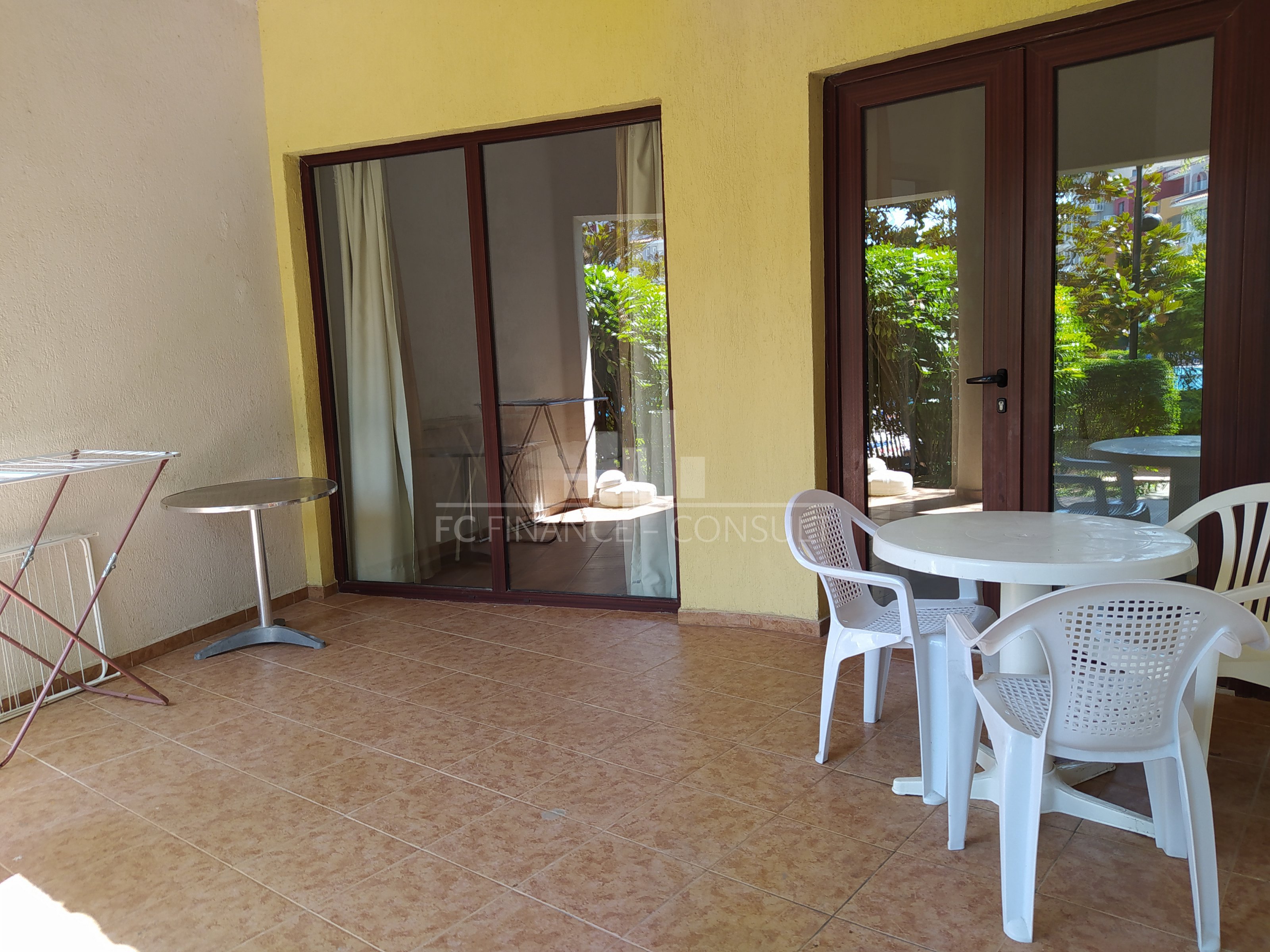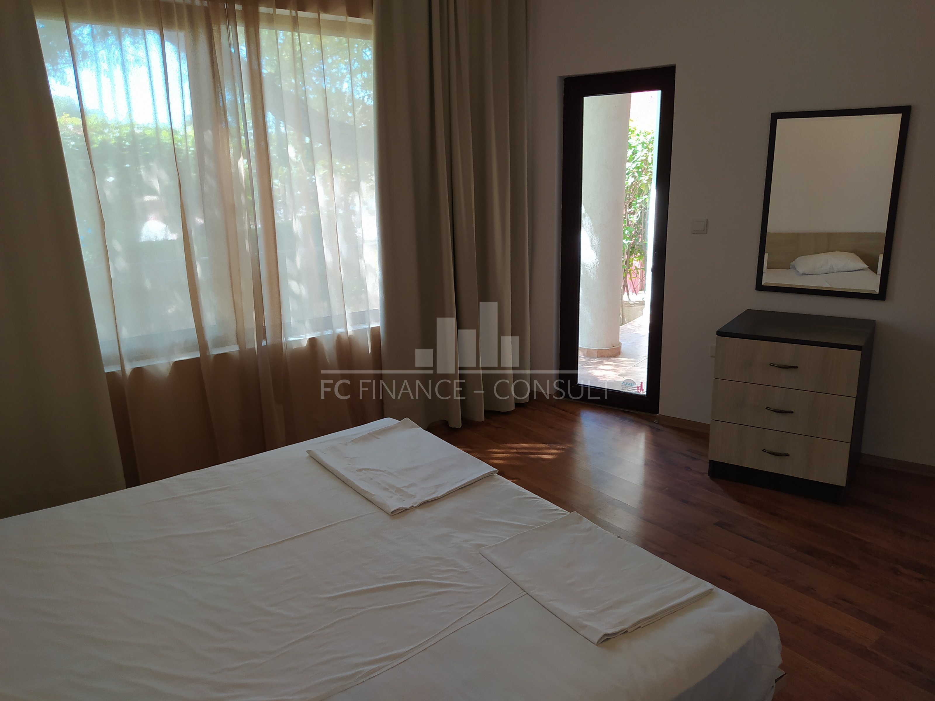 Na predaj trojizbový apartmán112m2 pri mori. Výhľad: na záhradu, na bazen, na more • Vzdialenosť od pláže: 10 metrov • Parkovacie miesto: áno, v areáli, na ulici • Kolaudácia: áno • Poplatok za údržbu spoločných priestorov: 12 eur/m2/rok • Rezervačný poplatok: 2000 eur • Možnosť ročného výnosu z investície: áno • Dispozícia: chodba, obývacia izba s kuchynským kútom, 2 spálne, kúpeľňa s WC, balkón • Poloha a vybavenie komplexu: bazény, vrátane detského bazéna • reštaurácia s bulharskou/európskou kuchyňou • obchody s potravinami a plážovými doplnkami • vnútorné fitness • sauna • kúpele • detský klub • masážna miestnosť • zdravotnícke stredisko • recepcia • detské a športové ihriská • bezplatné parkovanie • strážené parkovisko • 2 bazénov pre deti i dospelých, pri bazéne je k dispozícii plavčík a lehátka zadarmo • stolný futbal • biliard a stolný tenis • cestovná kancelária • squash