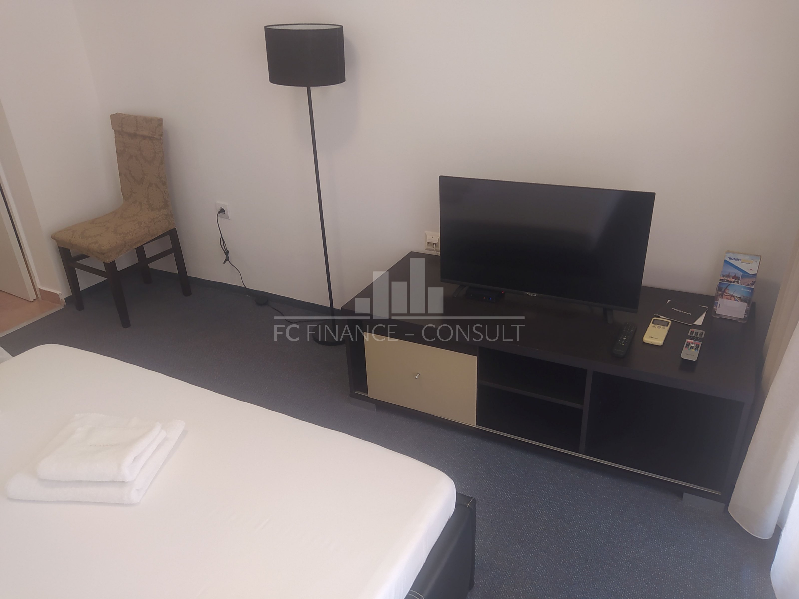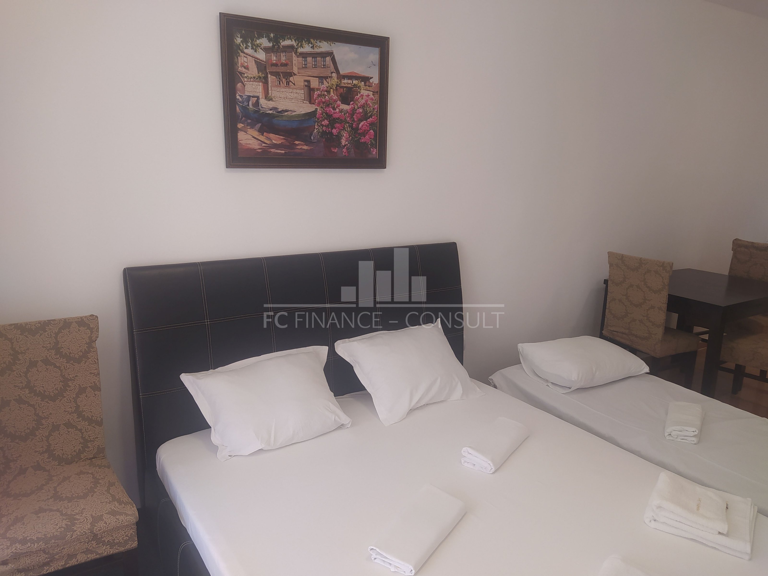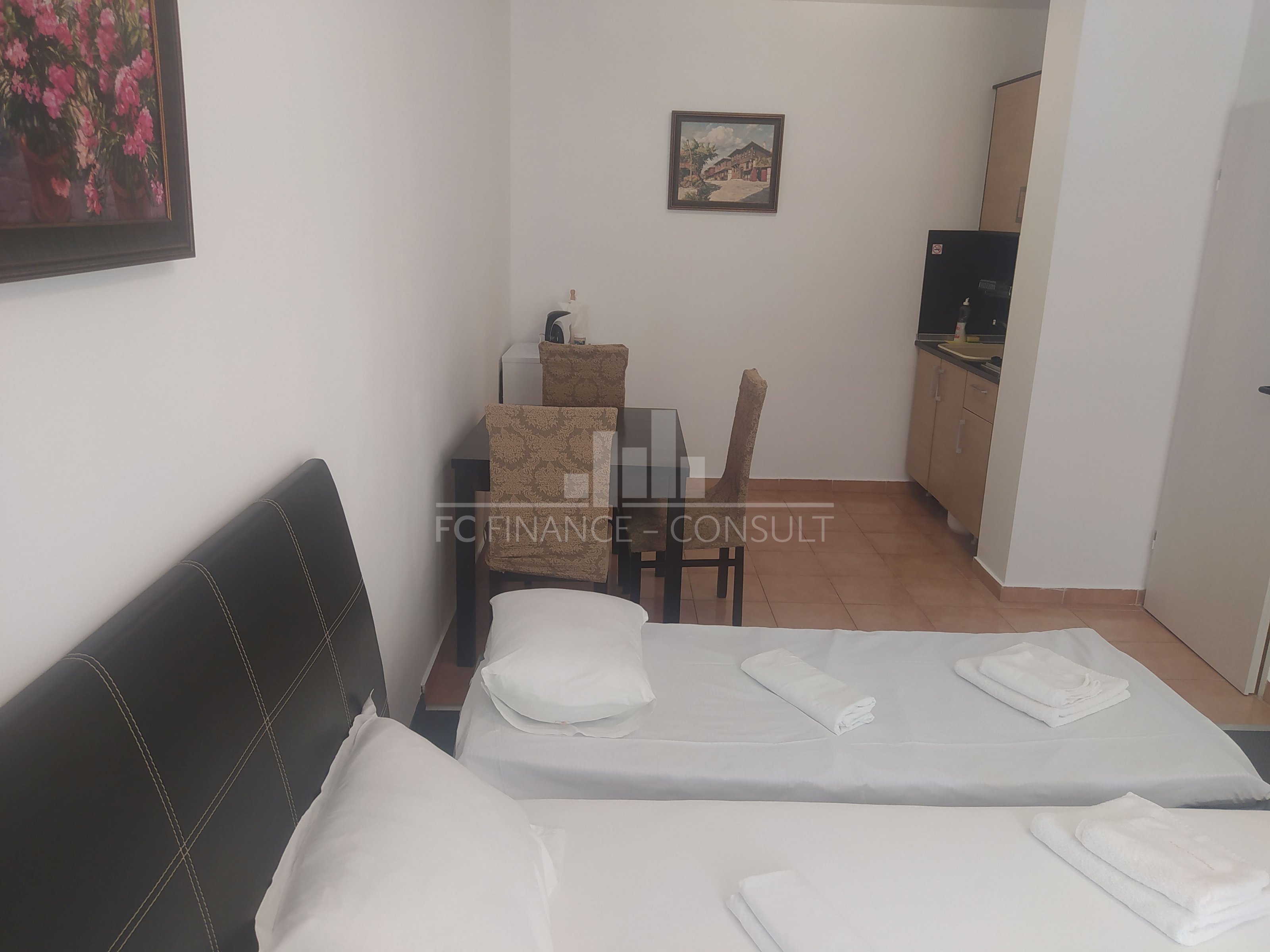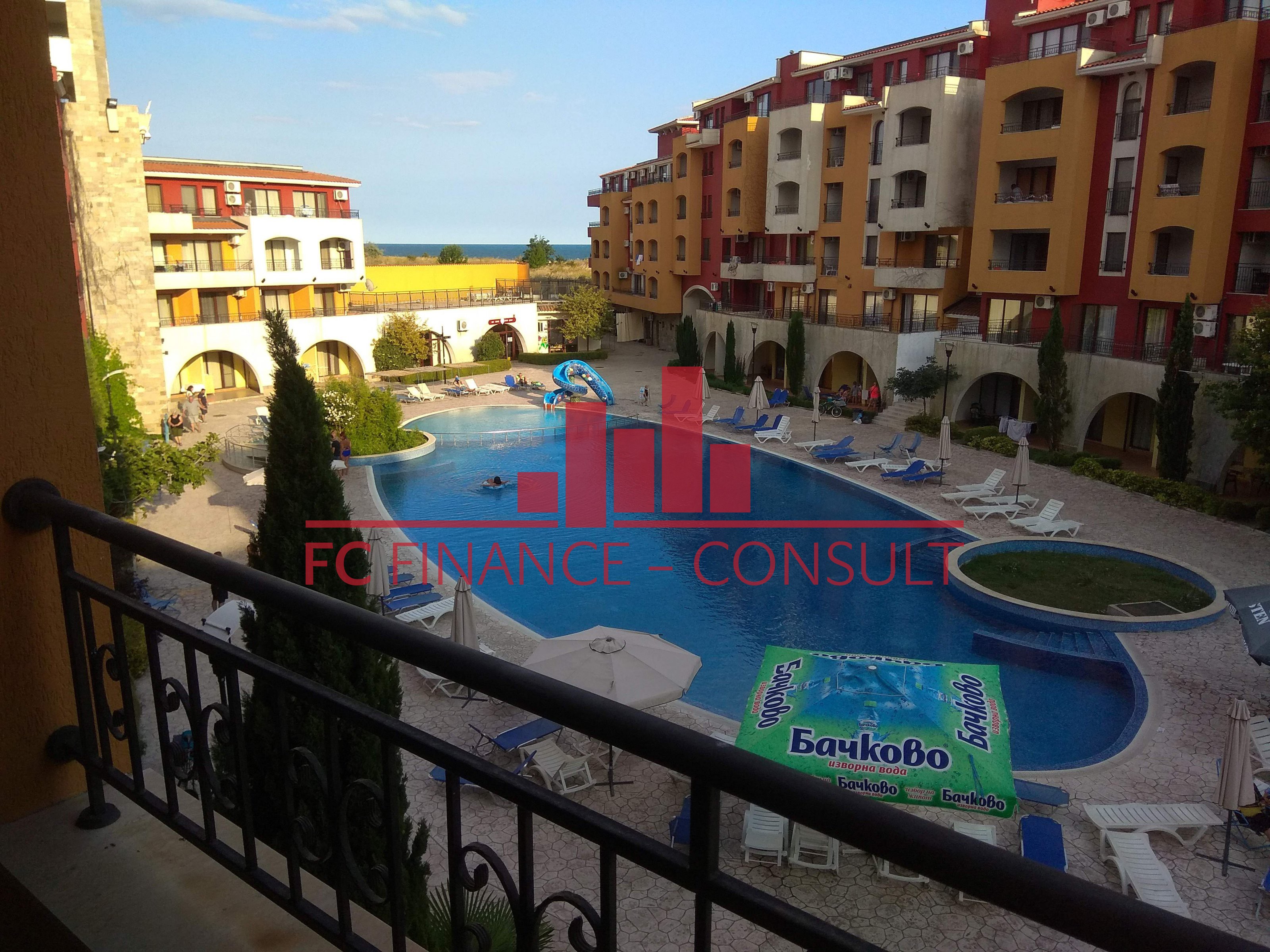 Štúdio apartmán 45 m2 priamo pri mori v krásnom zálive Aheloy v Bulharsku • Výhľad: na záhradu • Vzdialenosť od pláže: 10 metrov • Parkovacie miesto: áno, v areáli, na ulici • Kolaudácia: áno • Poplatok za údržbu spoločných priestorov: 12 eur/m2/rok • Rezervačný poplatok: 2000 eur • Možnosť ročného výnosu z investície: áno • Dispozícia: chodba, obývacia izba s kuchynským kútom, kúpeľňa s WC, balkón • Poloha a vybavenie komplexu: bazény, vrátane detského bazéna • reštaurácia s bulharskou/európskou kuchyňou • obchody s potravinami a plážovými doplnkami • vnútorné fitness • sauna • kúpele • detský klub • masážna miestnosť • zdravotnícke stredisko • recepcia • detské a športové ihriská • bezplatné parkovanie • strážené parkovisko • 2 bazénov pre deti i dospelých, pri bazéne je k dispozícii plavčík a lehátka zadarmo • stolný futbal • biliard a stolný tenis • cestovná kancelária • squash