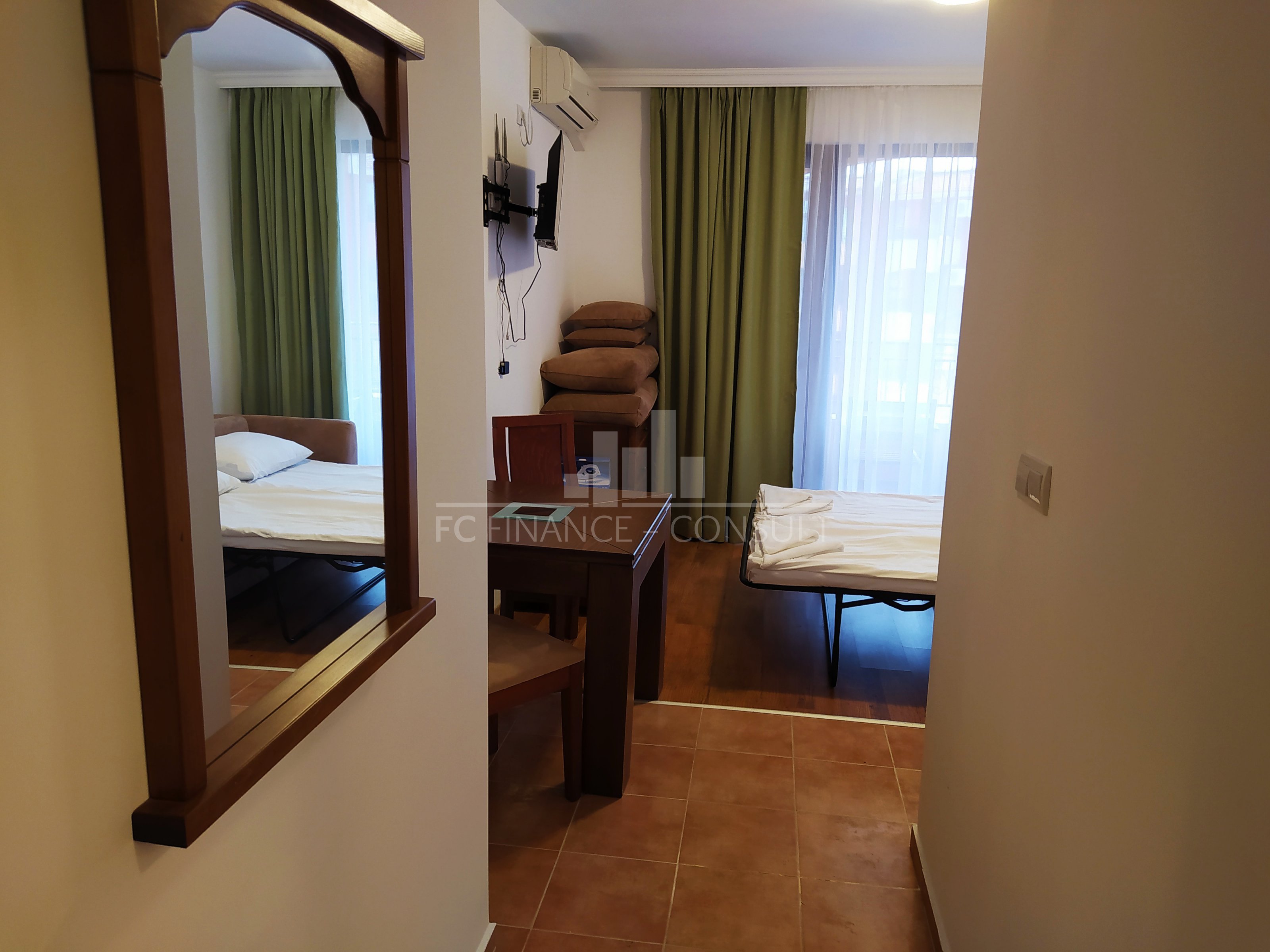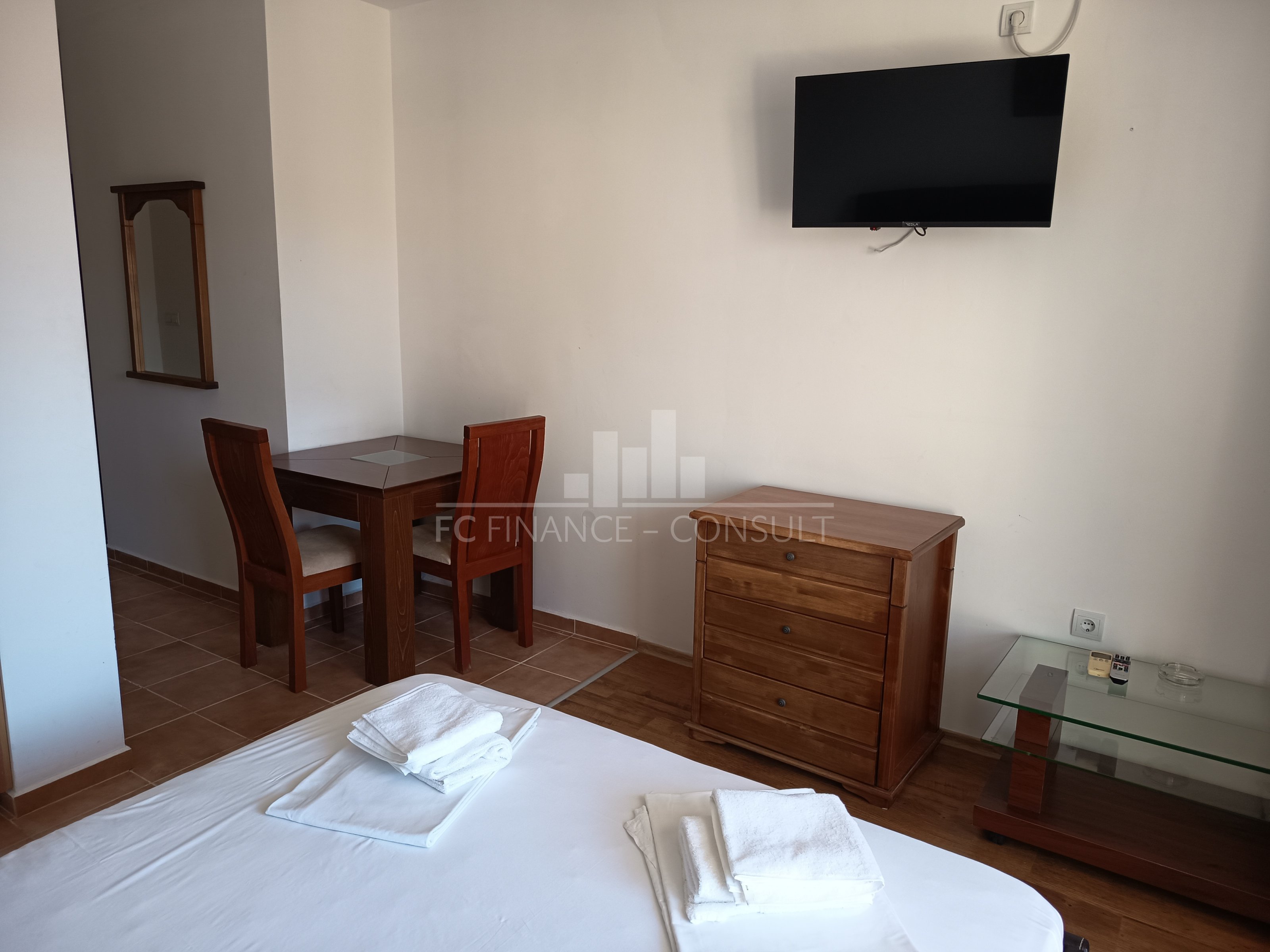 Štúdio apartmán s výhľadom na more a bazén 34 m2 priamo pri mori v krásnom zálive Aheloy v Bulharsku. Výhľad: na more, na záhradu a bazén. Štúdio s kuchynským kútom a výhľadom na more s rozlohou 34 m² sa nachádza v súkromnom, plne vybavenom rekreačnom komplexe na 4. poschodí päťposchodovej budovy. Čoraz viac ľudí pracuje na diaľku a hľadá miesto, kde môžu spojiť prácu, kvalitný život a rozumné náklady. Bulharsko - konkrétne Slnečné pobrežie a Aheloy - ponúka ideálne podmienky nielen pre digitálnych nomádov, ale aj pre ľudí poberajúcich invalidný alebo starobný dôchodok, prípadne pre tých, ktorí túžia po pokojnom mieste pri mori, podobne ako po chate - len s lepším počasím. More doslova pár krokov od pracovného stola. V Aheloy sa apartmány nachádzajú priamo na pláži v modernom komplexe vzdialenom približne 15 minút jazdy od letiska Burgas. Komplex leží pri jednej z najkrajších pieskových pláží v oblasti, ktorej súčasťou je aj malý prístav s rybárskymi loďami. V areáli je k dispozícii: 4 reštaurácie; kaviarne a bary; 2 bazény a bar pri bazéne; športové centrum, squashové kurty; fitness centrum, wellness & SPA, masáže; ambulancia praktického lekára a zubára; supermarket a menšie obchody; Ranné kúpanie v mori, práca online počas dňa a večerné prechádzky popri pobreží sa tu stávajú prirodzenou súčasťou každodenného života. Slnečné pobrežie následne ponúka živšiu atmosféru, reštaurácie, kaviarne a služby dostupné počas celého roka. Nízke náklady - ideálne pre prácu aj oddych na diaľku: Dlhodobý prenájom už od 220 € mesačne; Platobné podmienky: 3 mesiace vopred + 1 vratná kaucia; Internet a TV (cca 150 kanálov) za príplatok; Voda a elektrina sa účtujú podľa skutočnej spotreby; Bezplatné parkovanie s možnosťou ponechať auto počas celého roka; Možnosť dlhodobého prenájmu nášho vozidla. Celkové náklady tak zostávajú výrazne nižšie než vo väčšine európskych prímorských destinácií, čo oceňujú freelanceri, online podnikatelia, seniori aj ľudia hľadajúci pokojnejší životný štýl. Apartmány sú plne zariadené, s kuchyňou a všetkými potrebnými domácimi spotrebičmi. Aktuálne dostupné typy apartmánov: štúdiá; apartmány s jednou spálňou a kuchynským kútom; apartmány s dvoma spálňami a kuchynským kútom; Apartmány sú vhodné pre jednotlivcov, páry, rodiny, kolegov pracujúcich na diaľku, ako aj pre ľudí poberajúcich invalidný alebo starobný dôchodok. Jednoducho pre všetkých, ktorí snívajú o lepšom živote - živote pri mori. Slnečné pobrežie & Aheloy - výborná dostupnosť. Skvelá dopravná dostupnosť: letisko, verejná doprava, cestná sieť. Letisko Burgas len pár minút od Aheloy a Slnečného pobrežia. Letecké spojenia fungujú aj mimo hlavnej sezóny; letisko Varna cca 80 km. Výborná poloha: Nesebar, Slnečné pobrežie, Aheloy, Pomorie, Sveti Vlas, Elenite - všetko len pár minút od seba. Všetko v dosahu mesta Burgas. Vynikajúca občianska vybavenosť, bezpečnosť a nepretržitá podpora v cudzích jazykoch. Školy, škôlky, zdravotnícke zariadenia, pošta, množstvo supermarketov, reštaurácií a kompletná sieť služieb - jednoducho povedané, všetko máte doslova na dosah ruky. Apartmány sú v našom osobnom vlastníctve, bez realitných sprostredkovateľov - neplatíte žiadne provízie. Po celý rok je zabezpečená podpora priamo na mieste. Mnohí Európania tu už žijú dlhodobo - pracujú online alebo si tu našli nový životný rytmus.